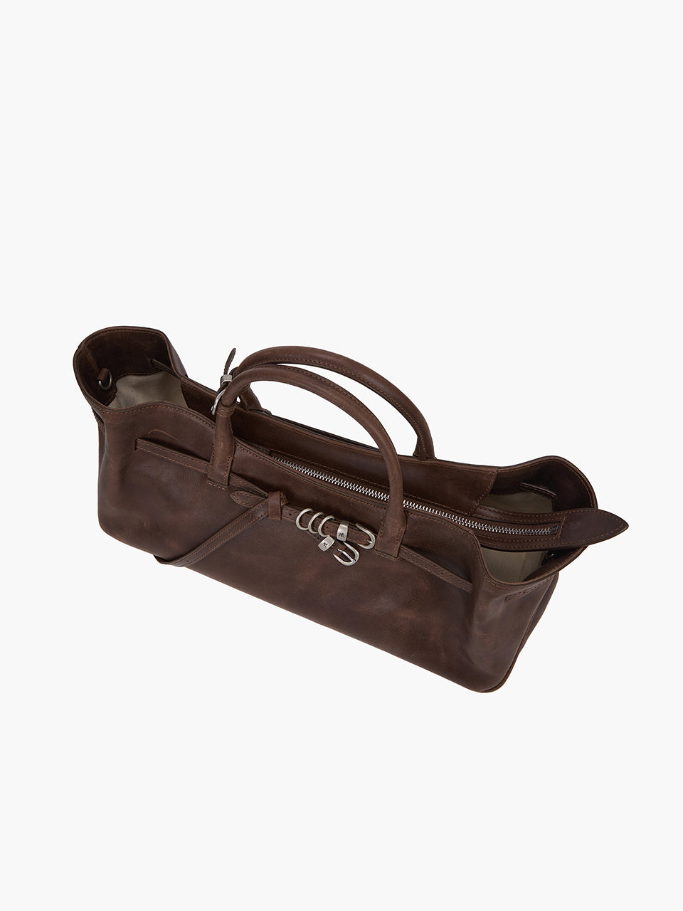 · East-west structured bag featuring a knotted belt strap