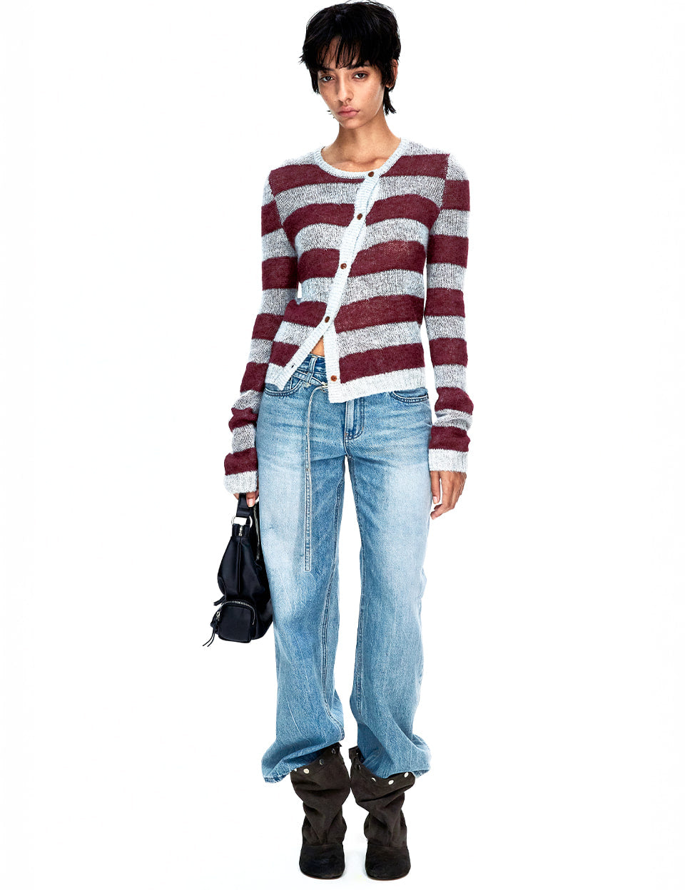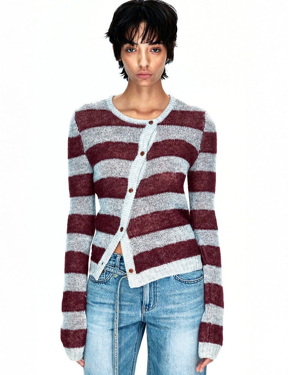 55 MOHAIR STRIPE CARDIGAN_burgundy/grey