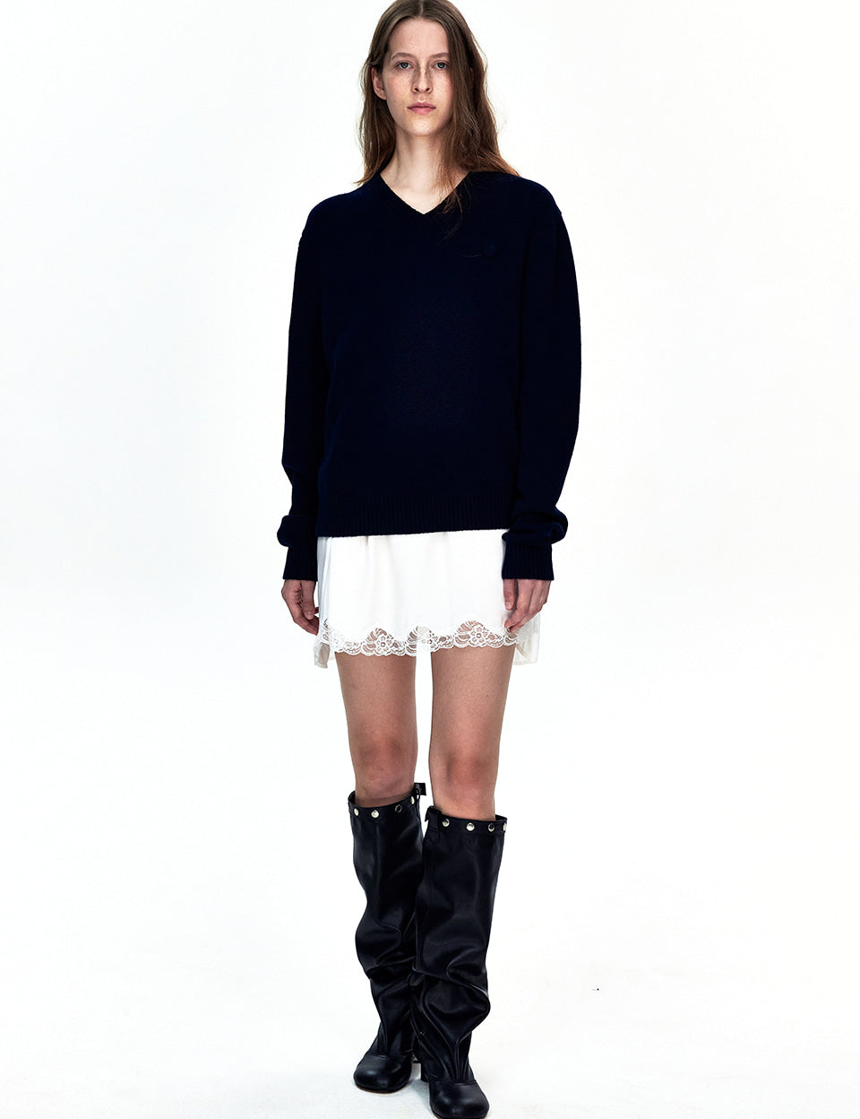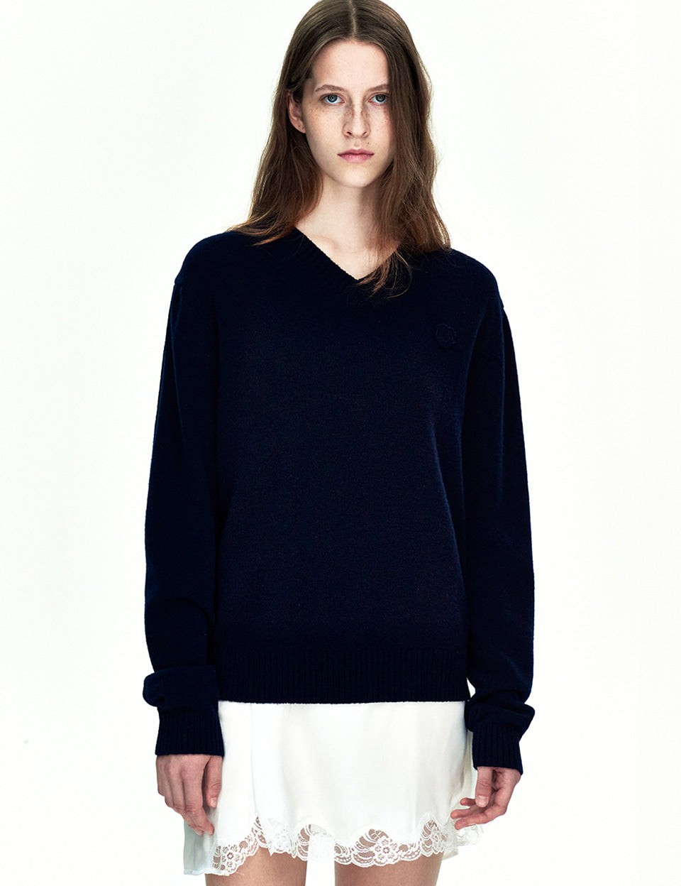 FLORE V-NECK PULLOVER_navy