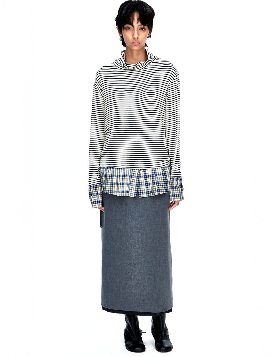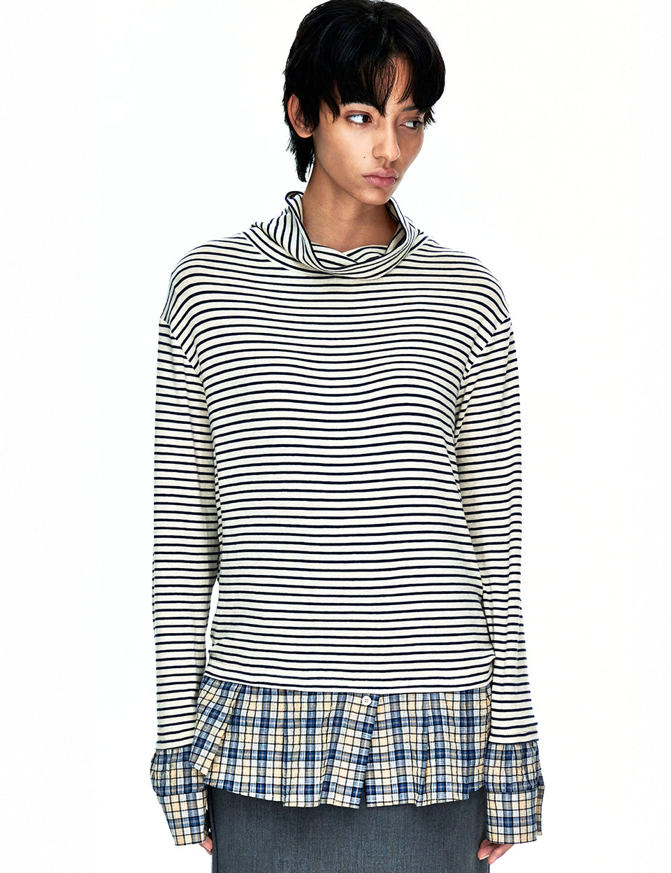 STRIPE TURTLENECK SHIRTS LAYERED TOP_navy