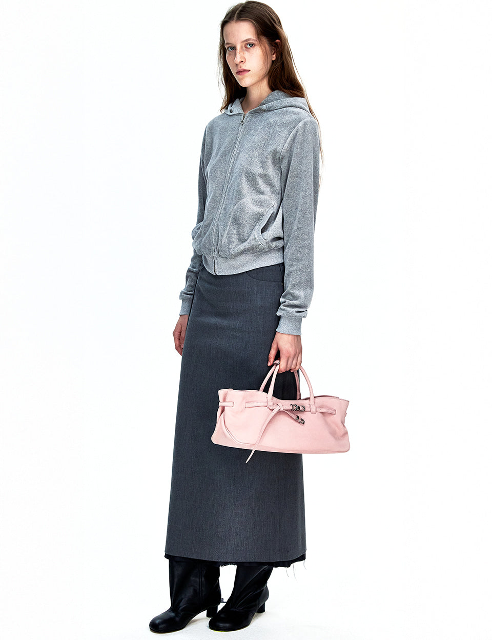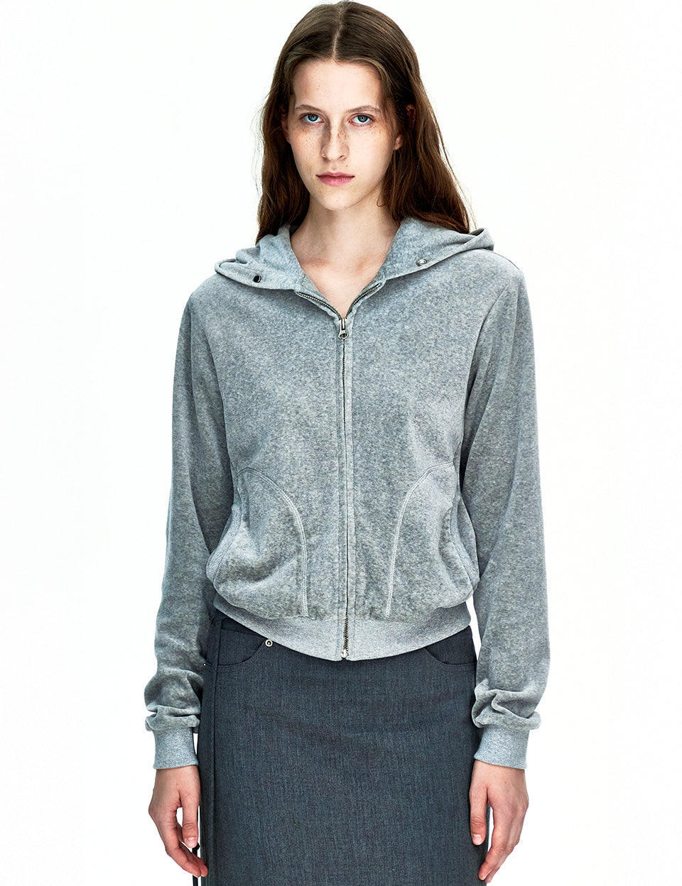 VELOUR HOOD ZIP-UP_melange grey