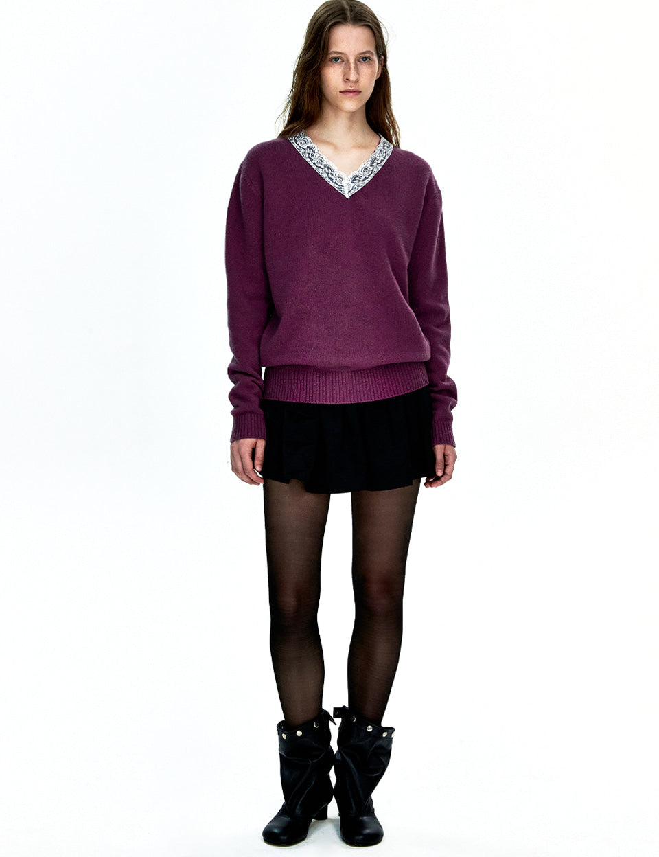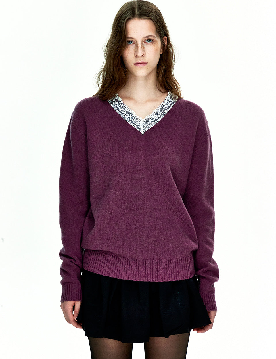 LACE FLORE V-NECK PULLOVER_purple