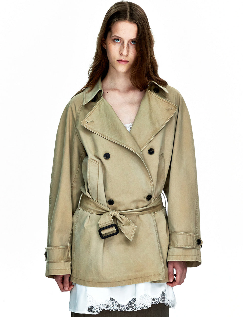 WASHED HALF TRENCH COAT_beige