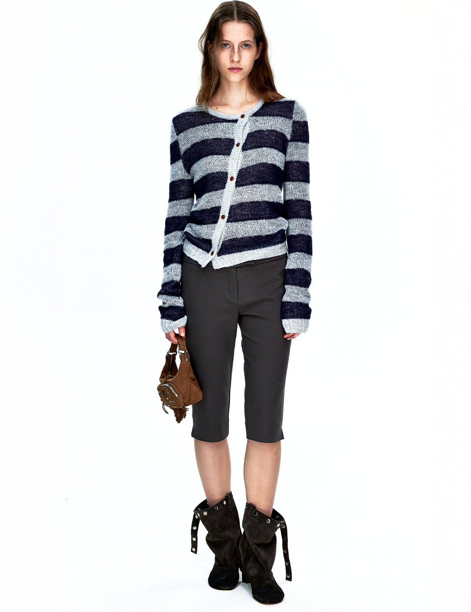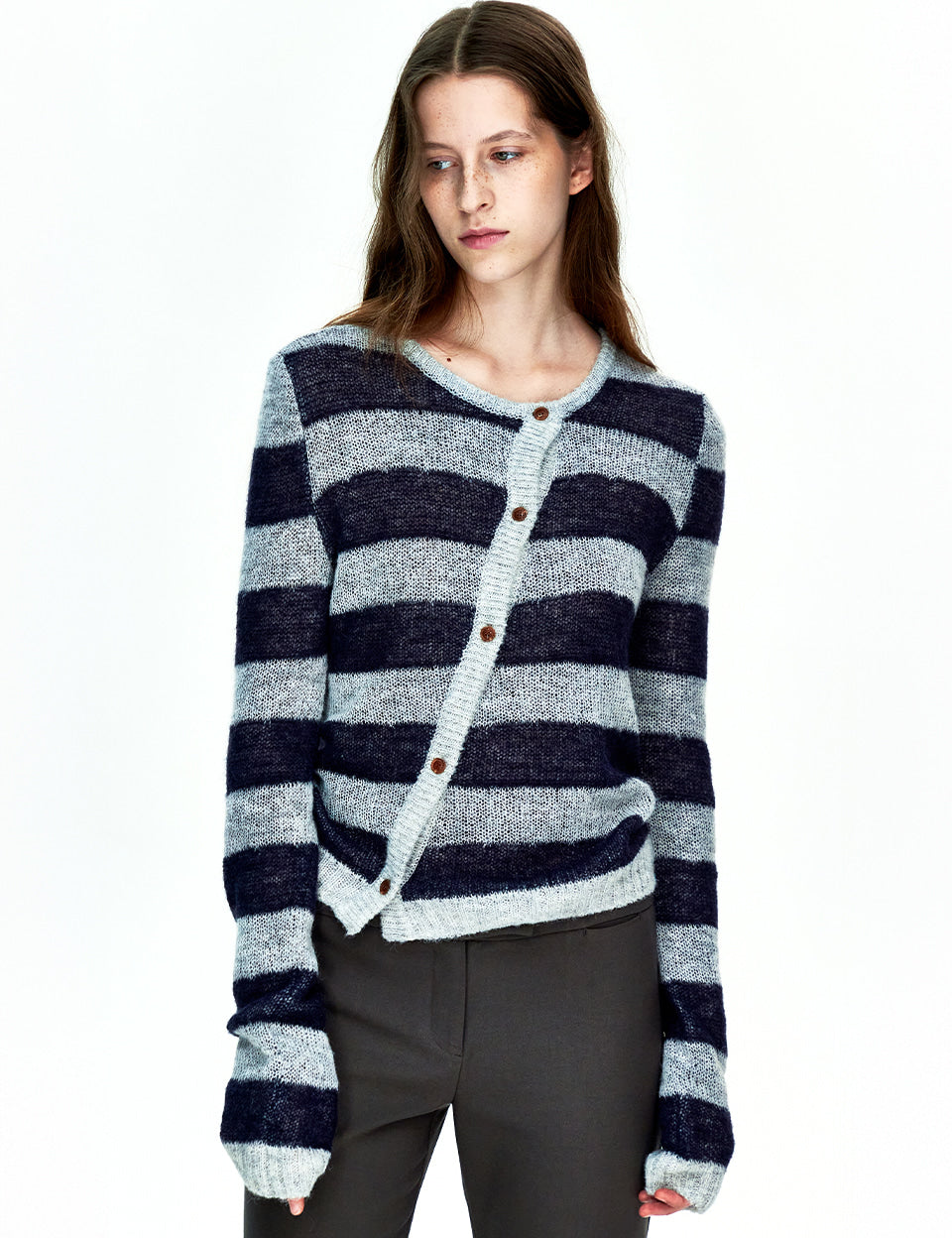 55 MOHAIR STRIPE CARDIGAN_navy/grey