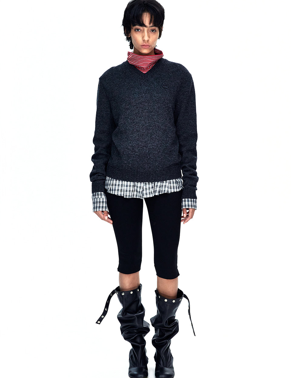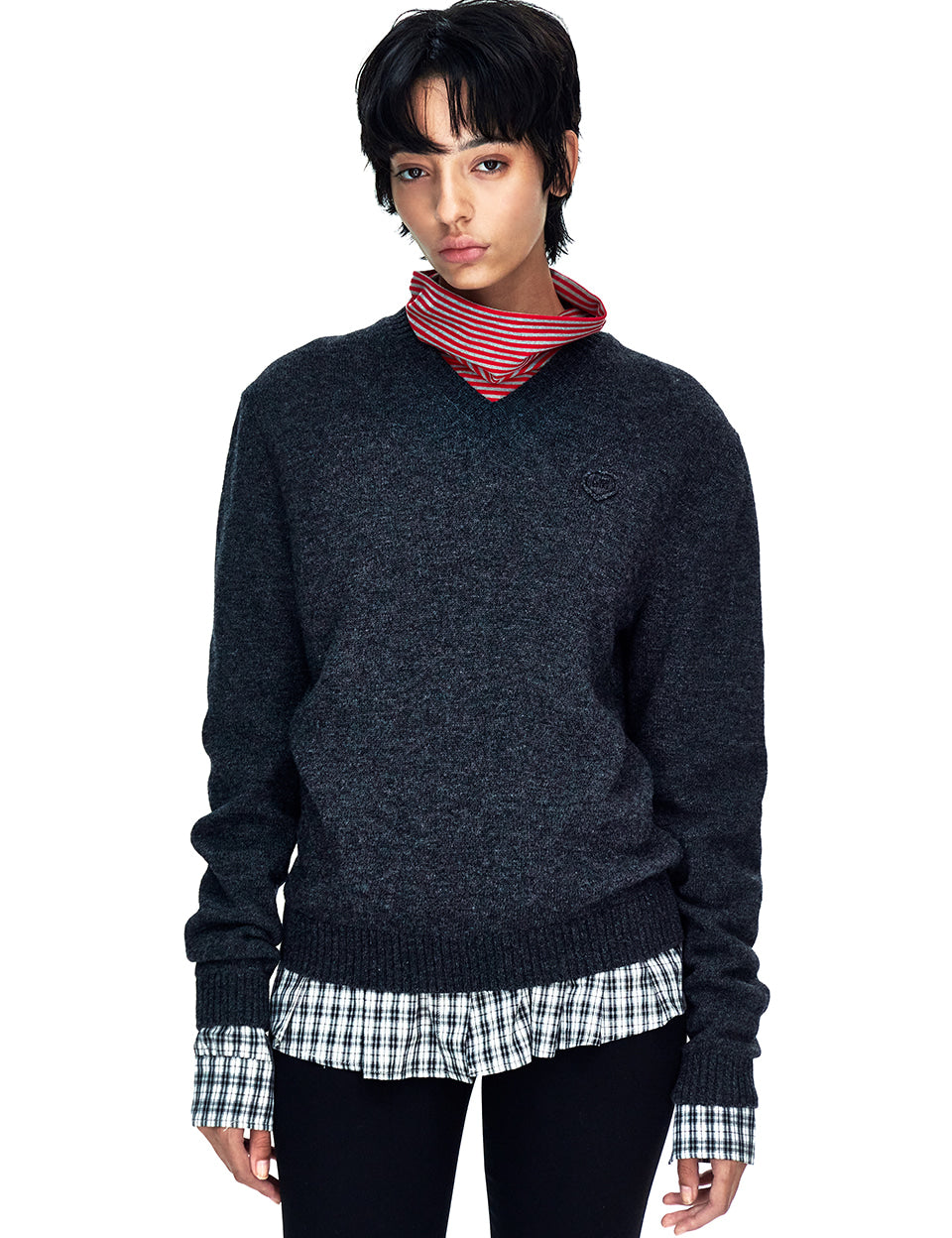 FLORE V-NECK PULLOVER_charcoal