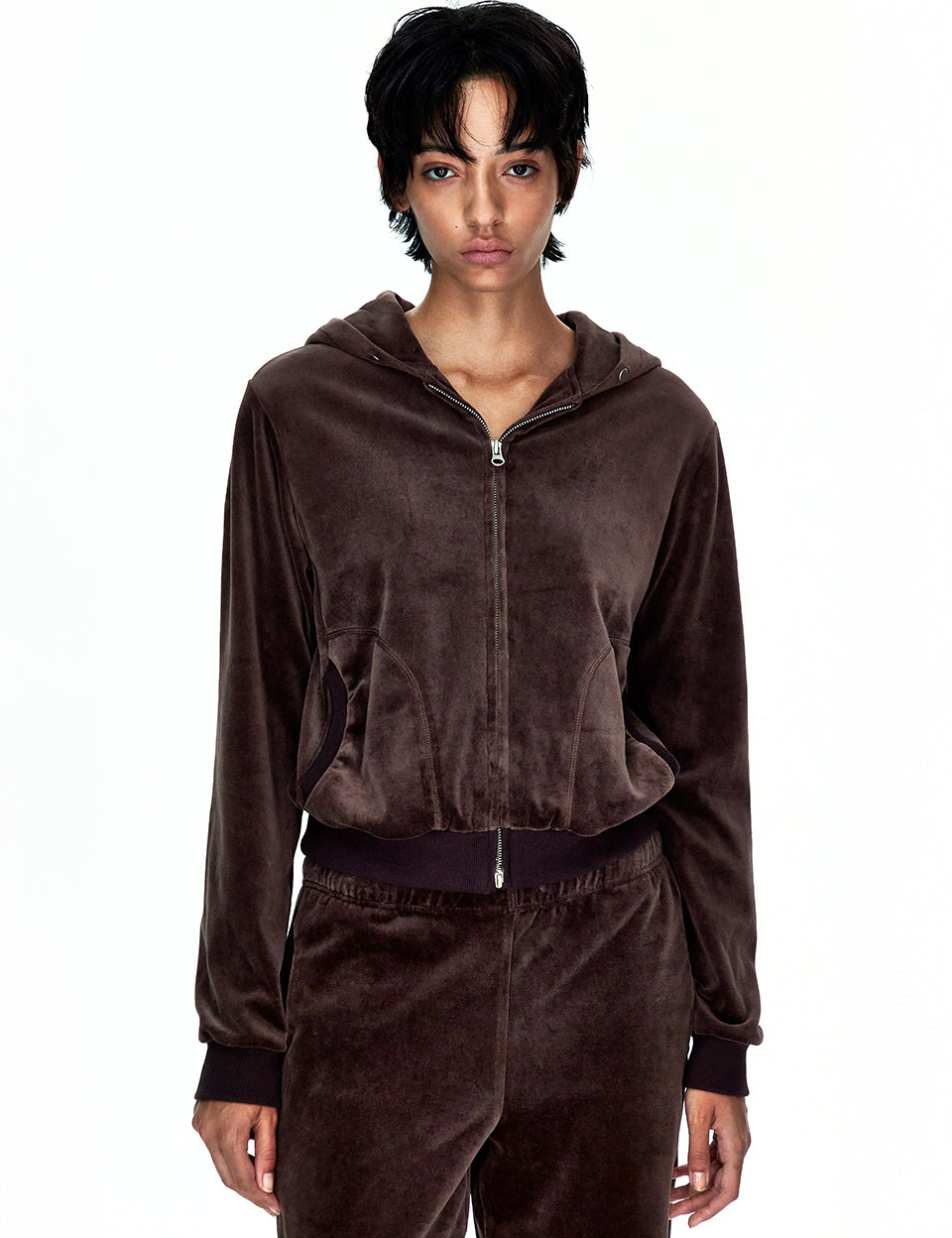 VELOUR HOOD ZIP-UP_brown