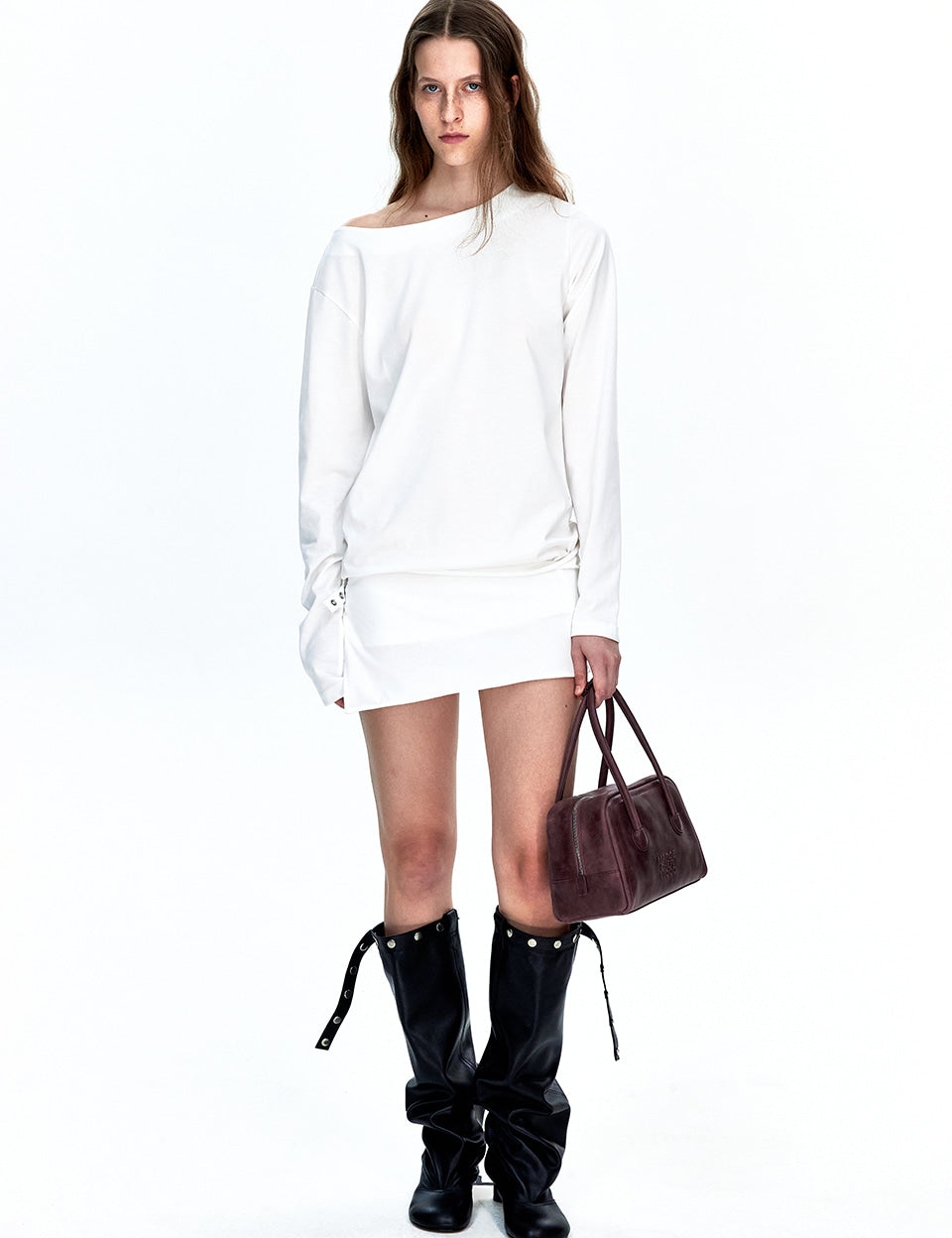 BOATNECK WRAP LONG SLEEVE_white