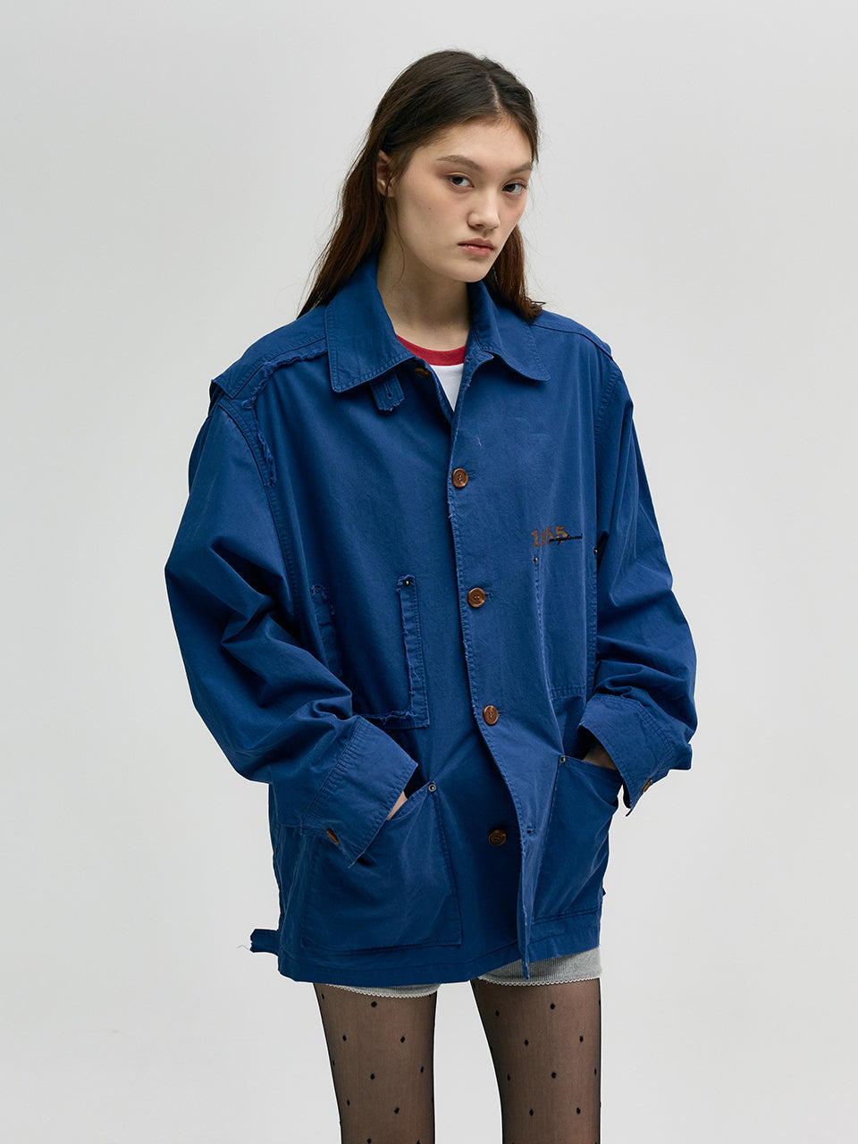 [OS] LENGTH: 74.5/ SHOULDER:53/ CHEST: 59/ HEM: 56.5/ ARMHOLE: 32.5/ SLEEVE LENGTH: 60/ SLEEVE HEM: 8