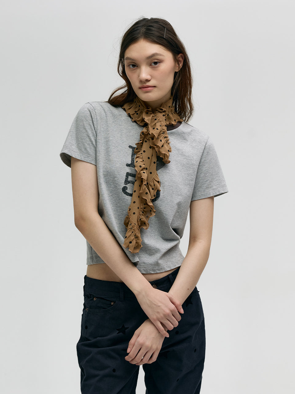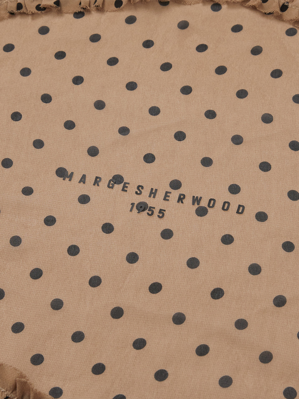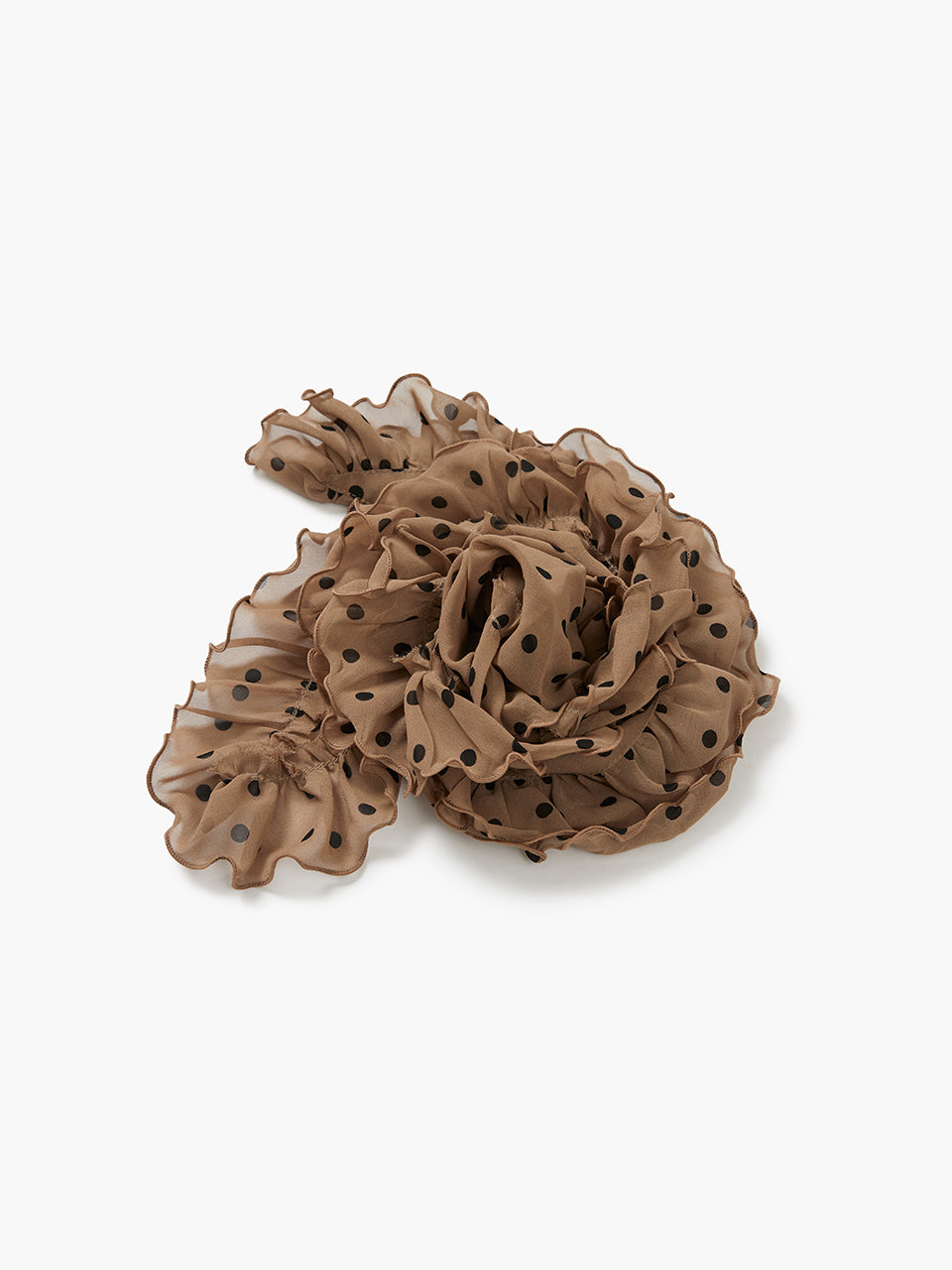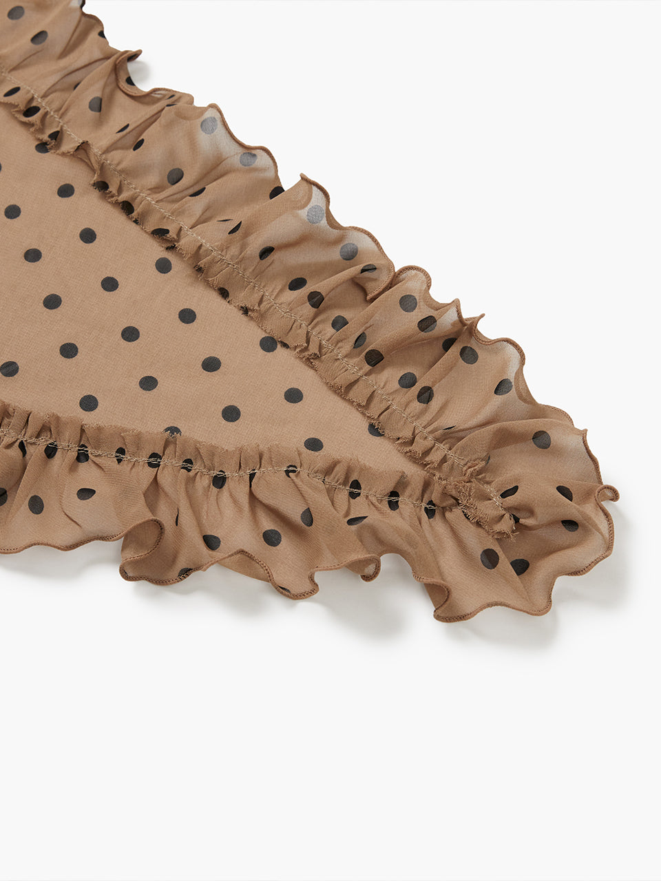 - Vintage-inspired scarf with a polka dot pattern and frill details