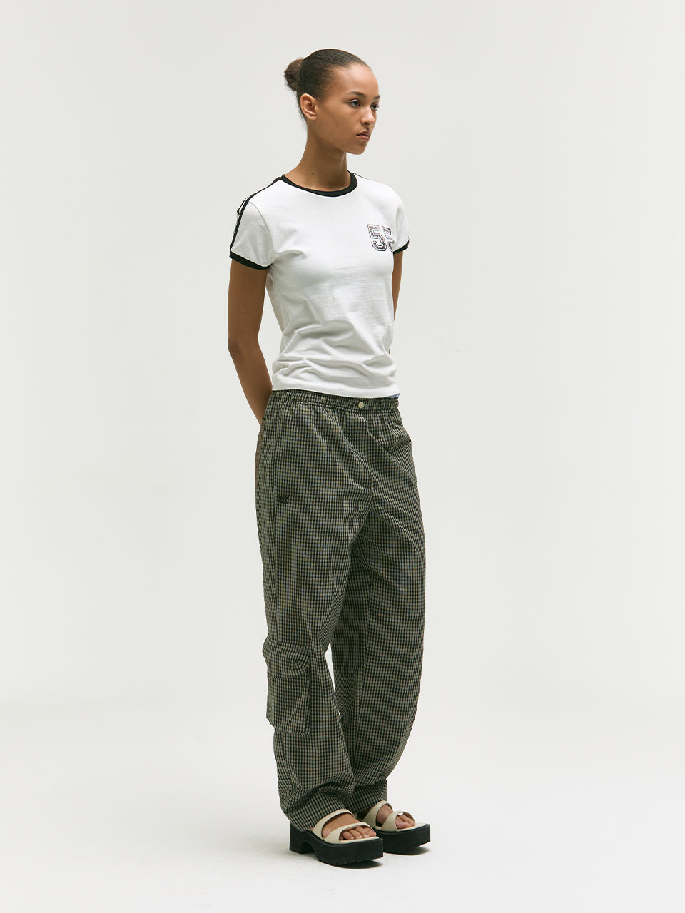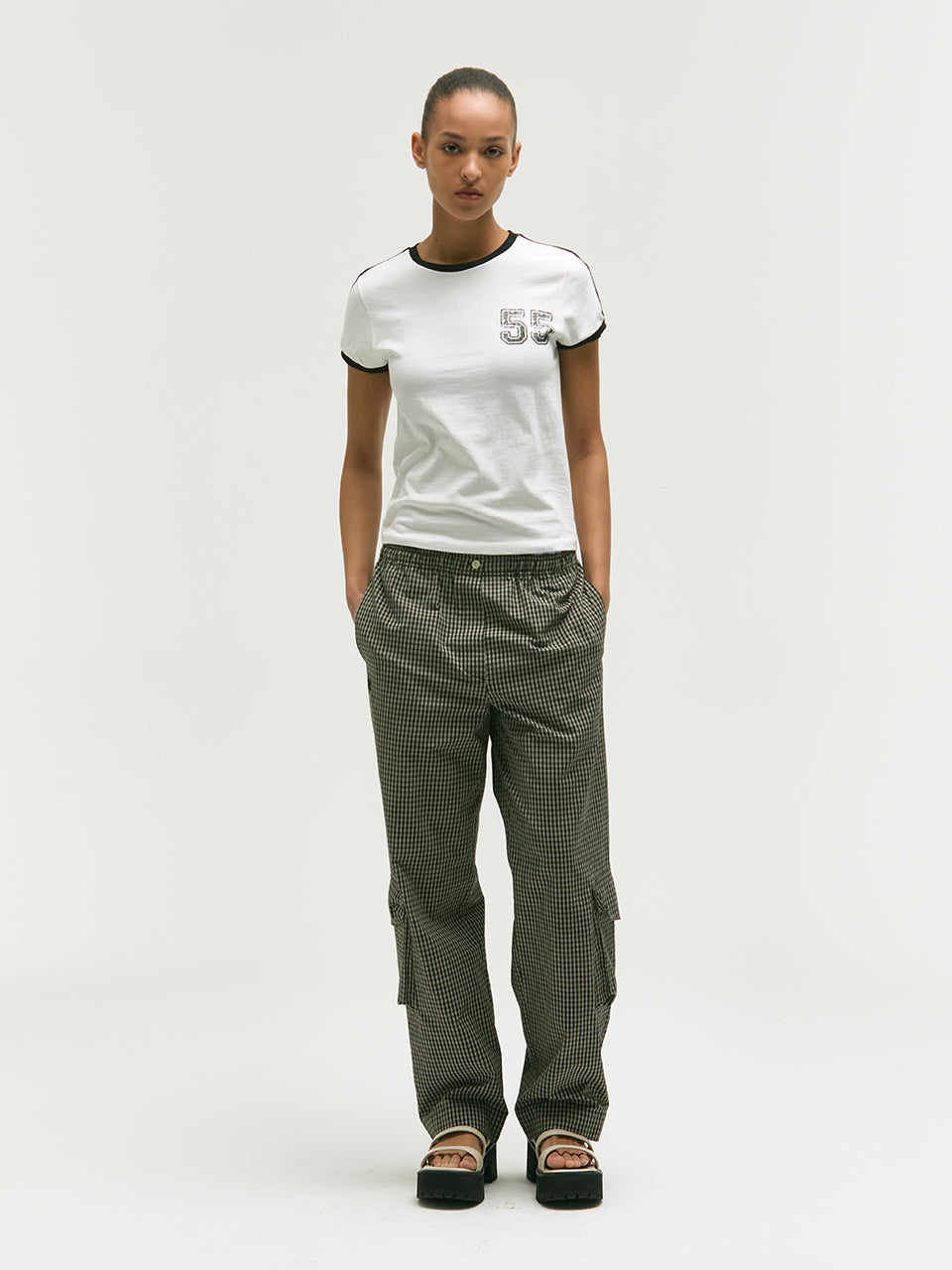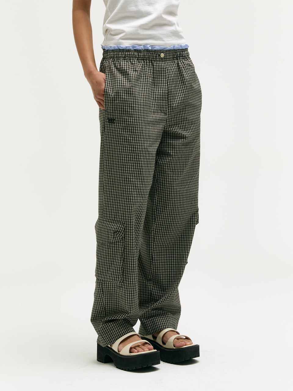 - Natural mood pajama-style cargo pants made from 100% cotton vintage check fabric
