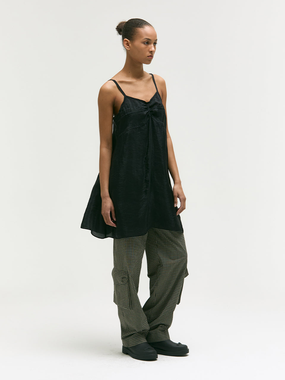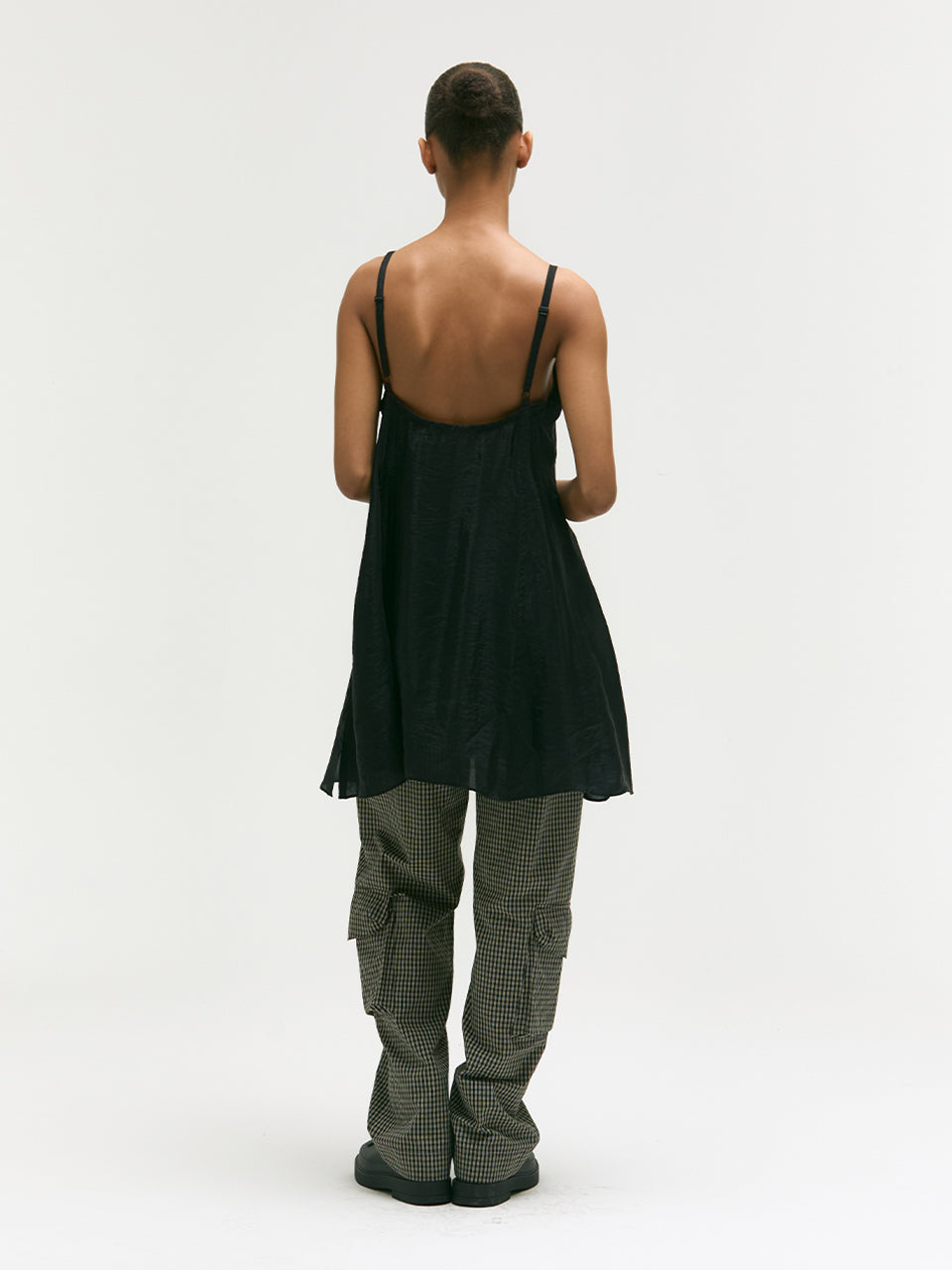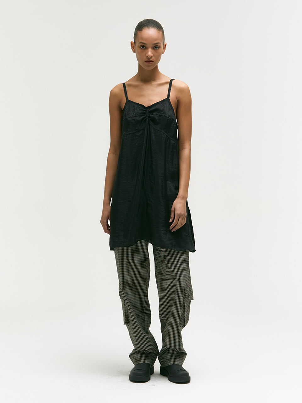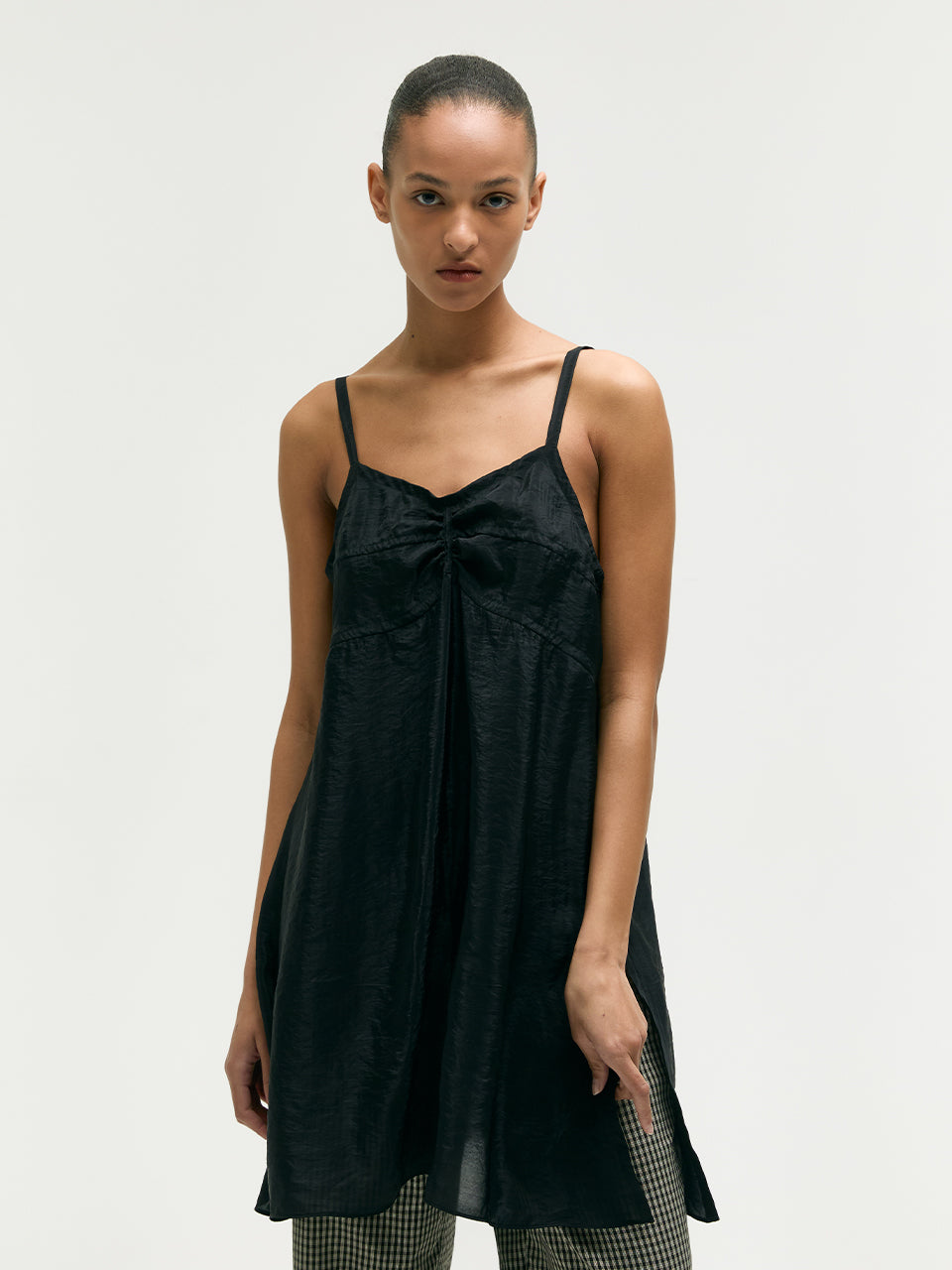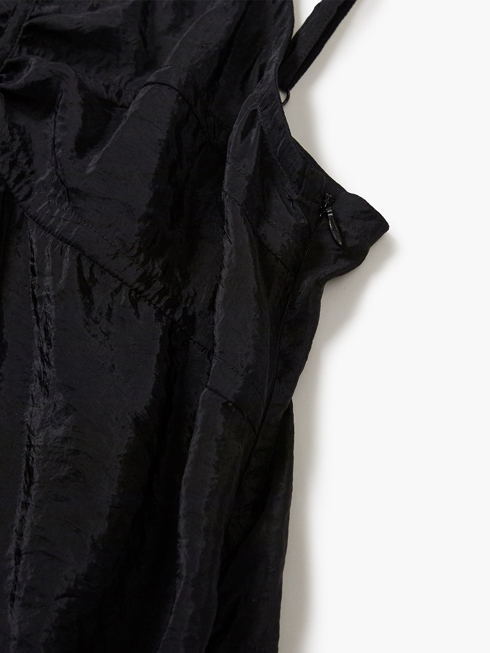 - Bustier-style seam lines at the chest enhance the vintage classic mood of a slip dress