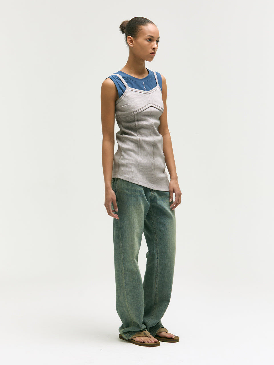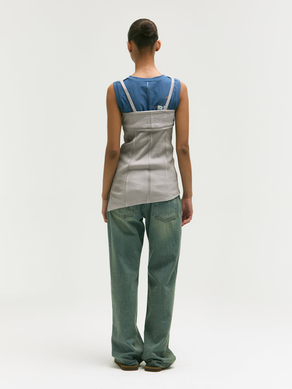 - Sleeveless top featuring a casual reinterpretation of bustier details