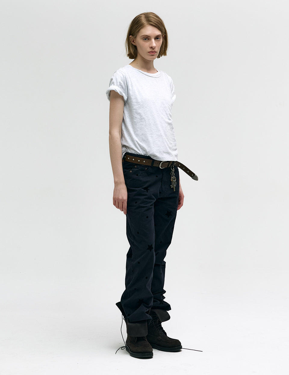 WAIST BUCKLE COTTON PANTS_charcoal