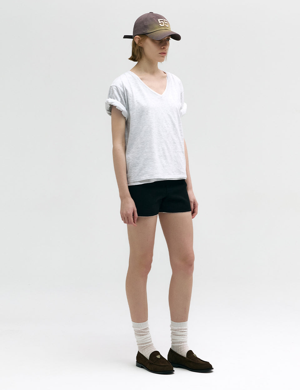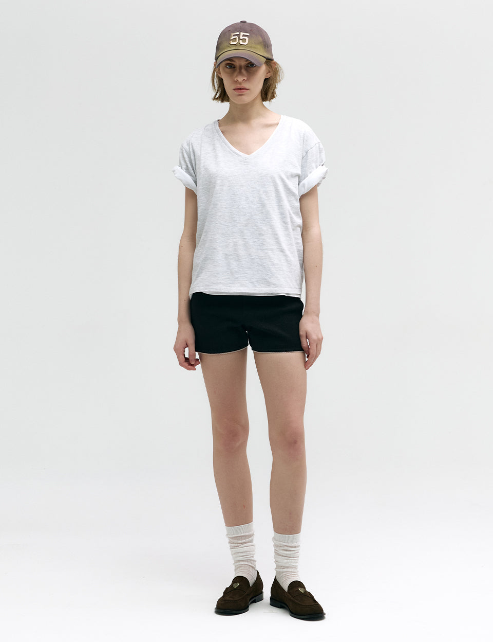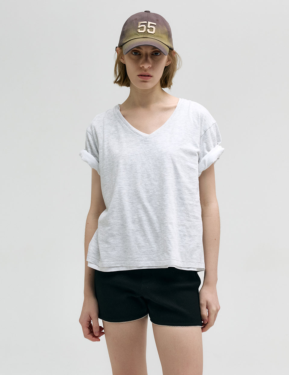 SHABBY V-NECK T-SHIRT_light grey