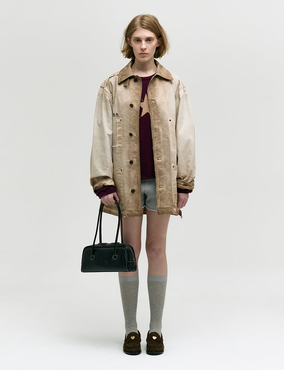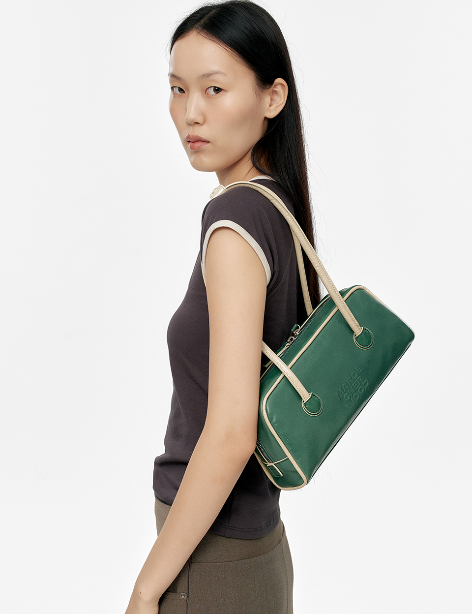 SOFT BOSTON EW PIPING_hunter green crinkle+cream beige crinkle