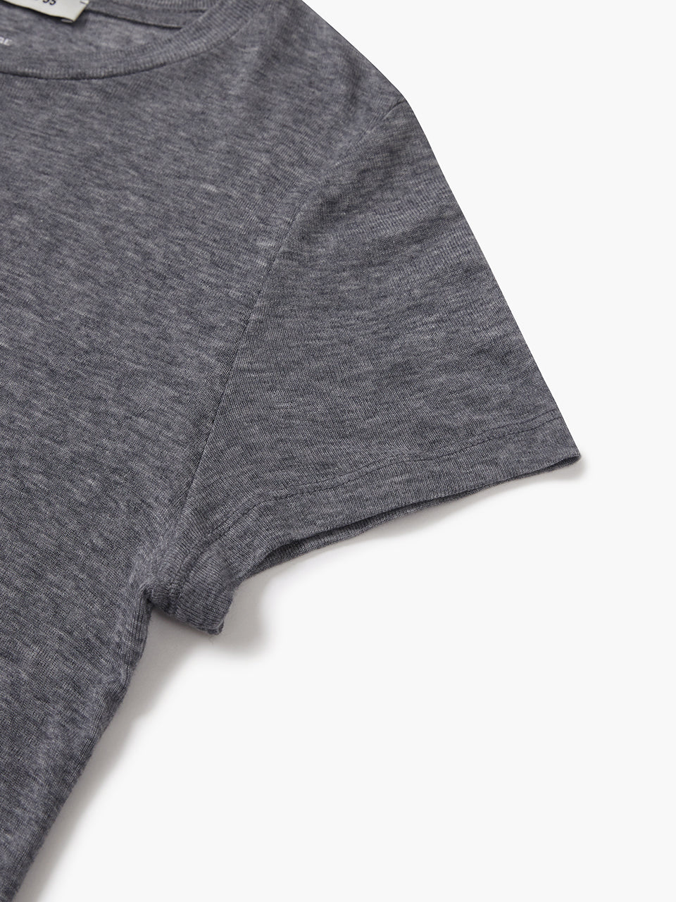 A short-sleeve T-shirt crafted from a soft and lightweight wool-blend fabric.