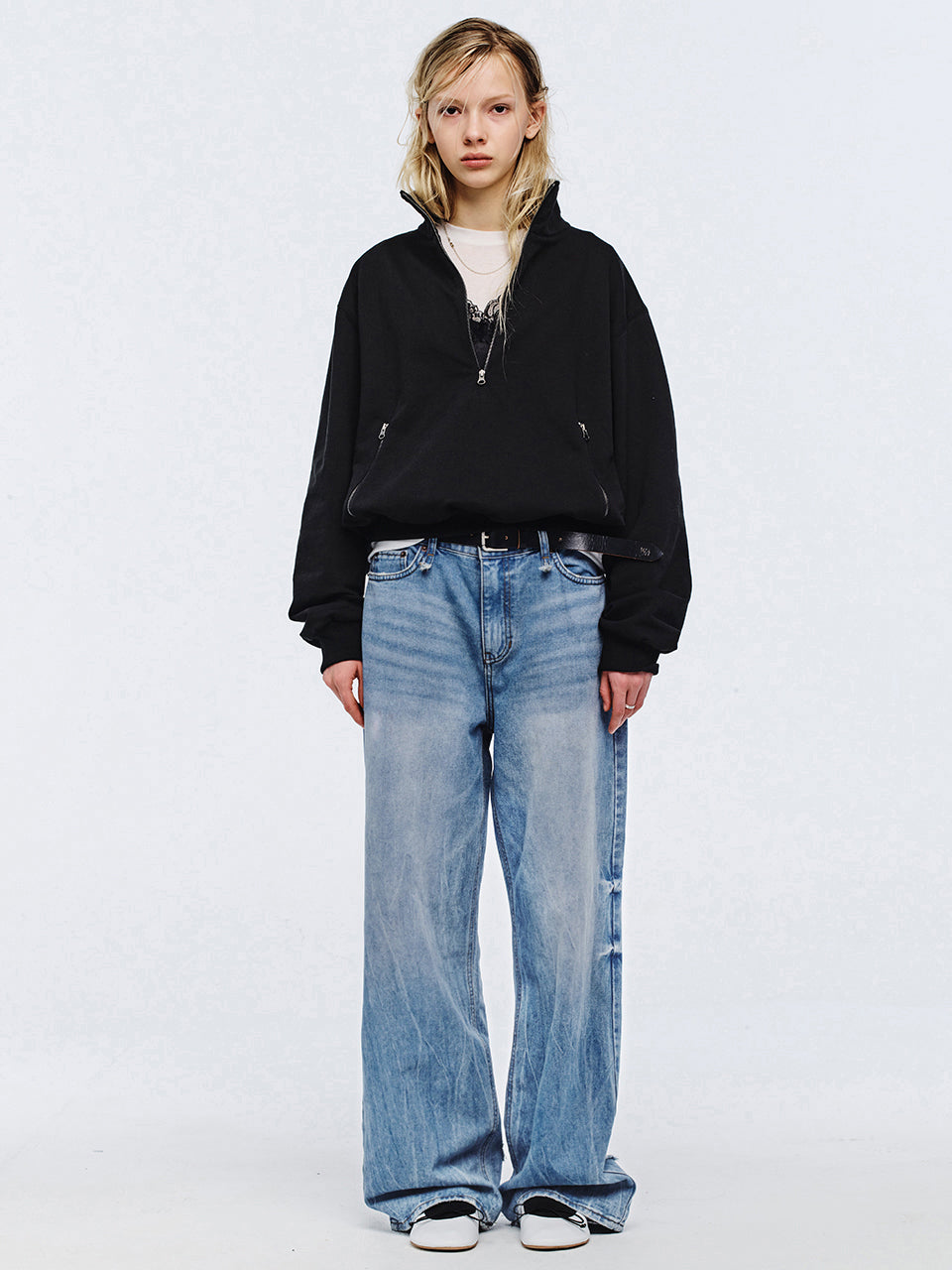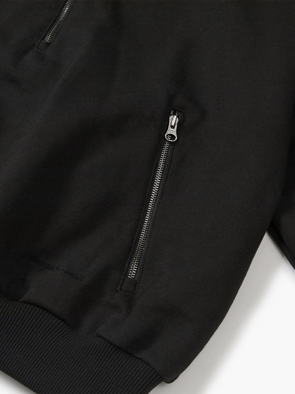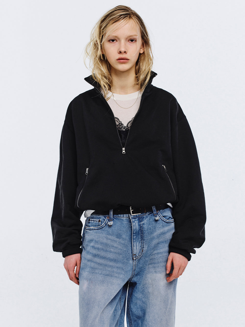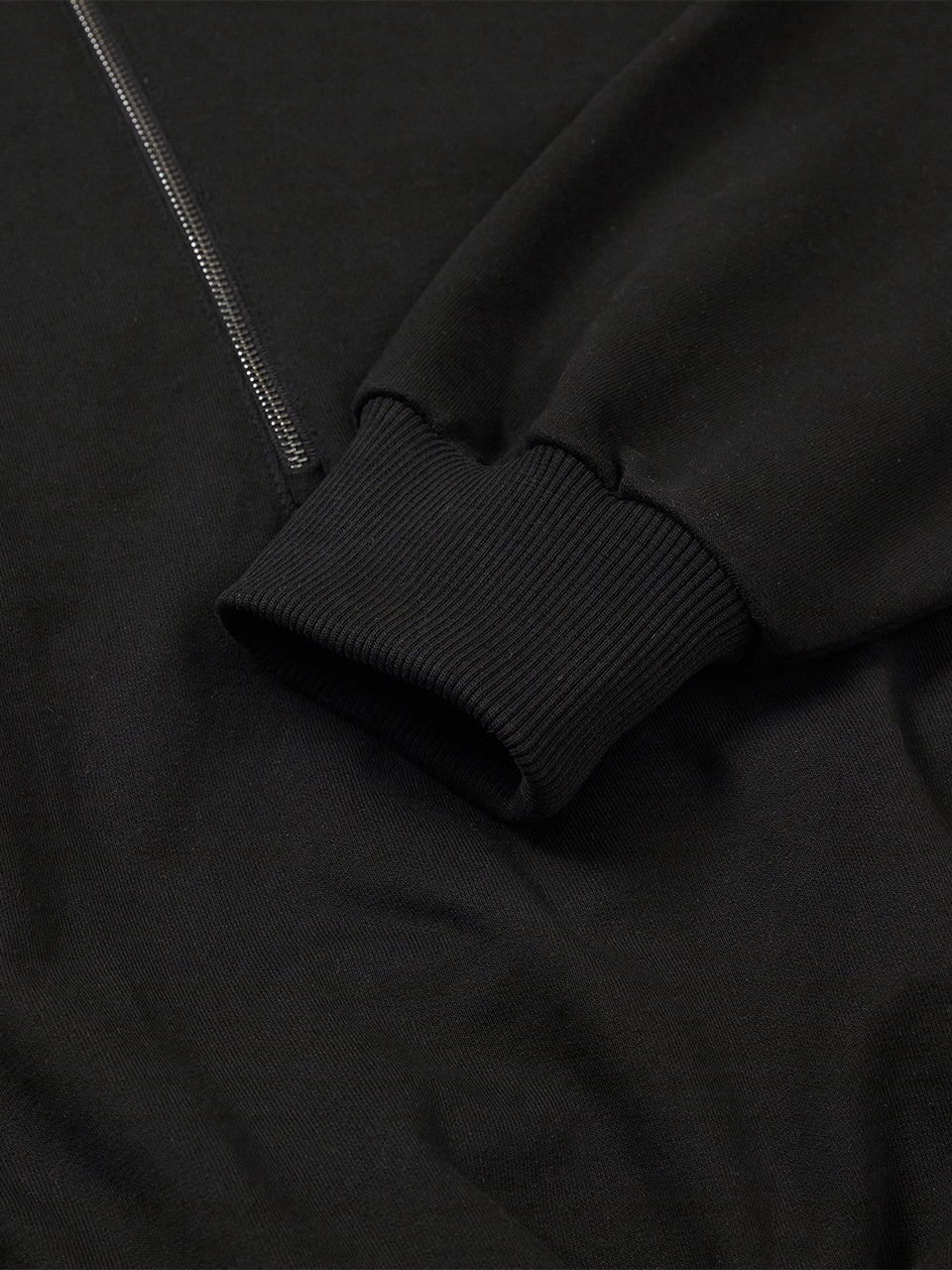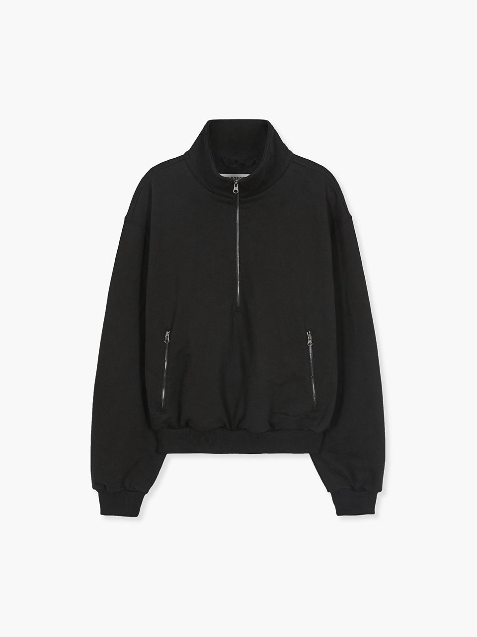 This semi-loose fit half-zip sweatshirt is crafted from sturdy yet soft cotton fabric. It can be worn on its own or layered effortlessly with inner pieces.