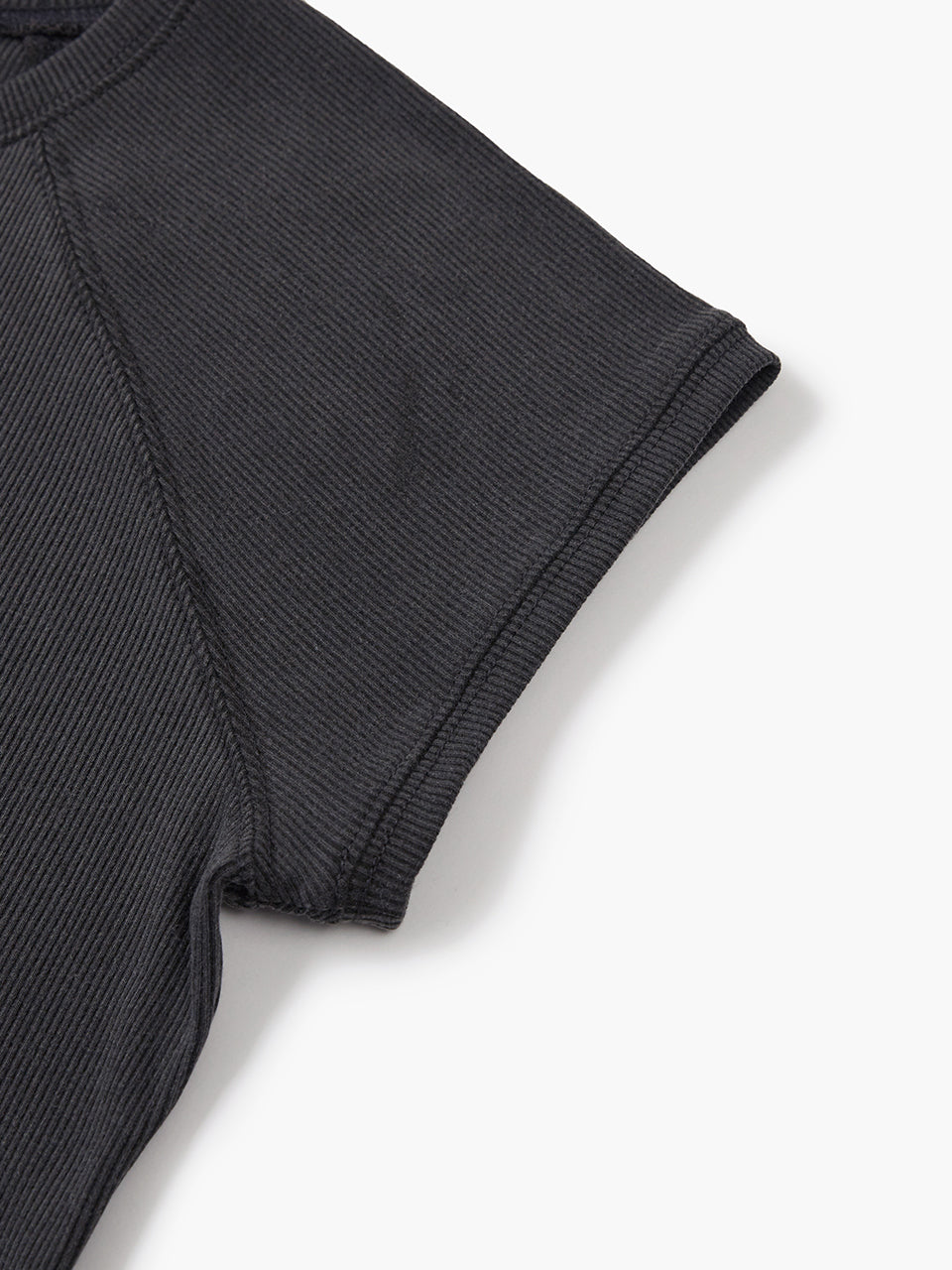 · Pigment‐dyed fabric and cap sleeves for a vintage look