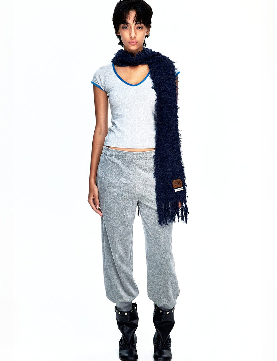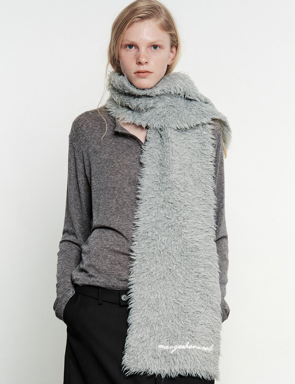 PUPPY TOUCH FRINGE MUFFLER_grey blue