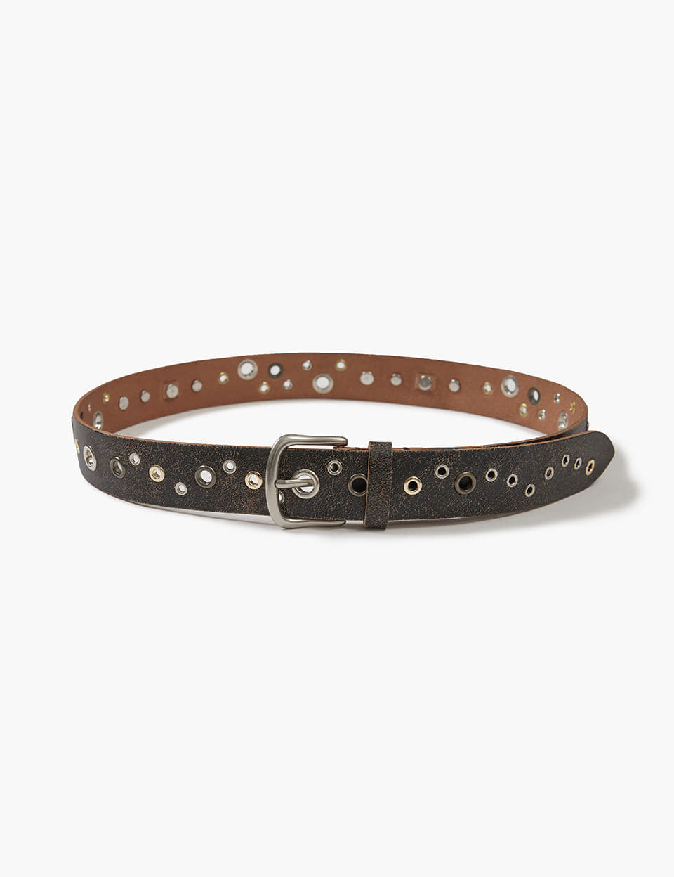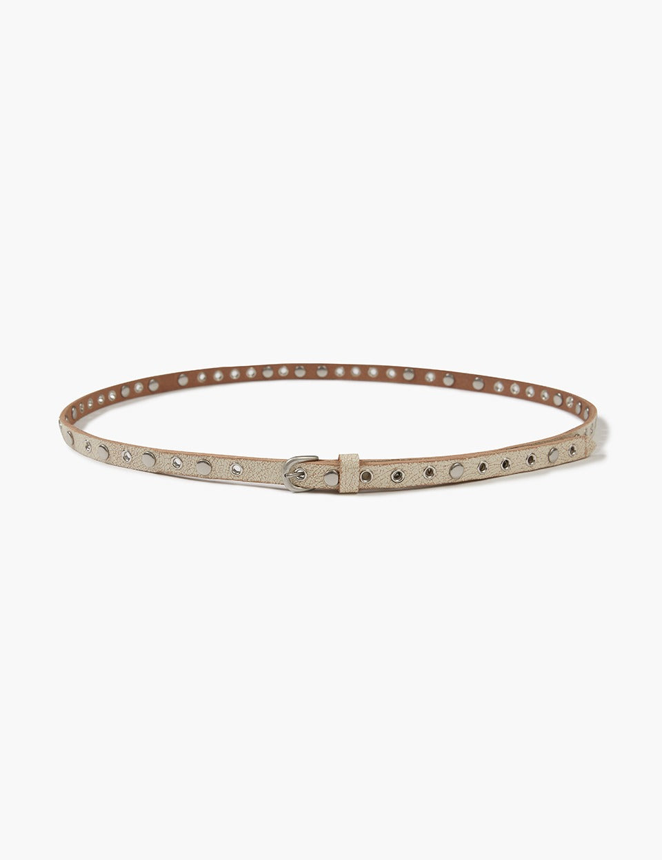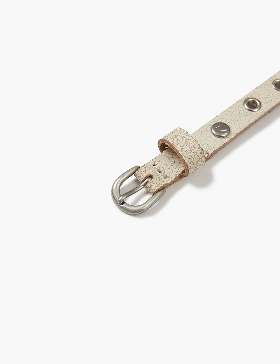 SLIM EYELET CRACK LEATHER BELT_ivory