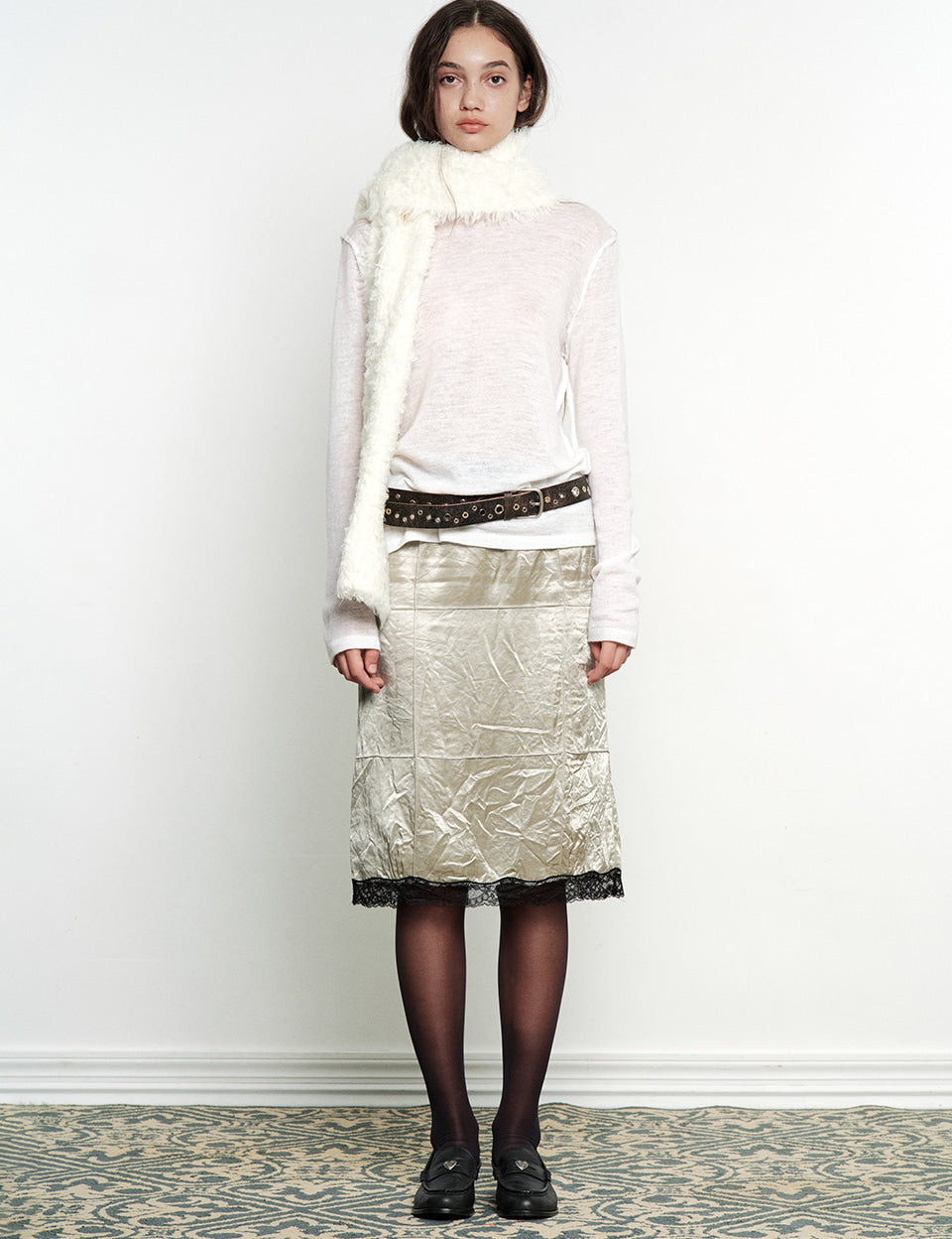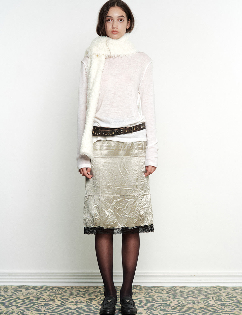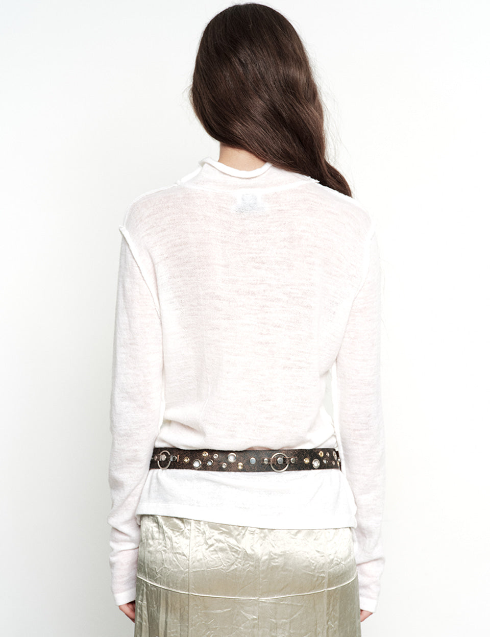 SLIM EYELET CRACK LEATHER BELT_ivory