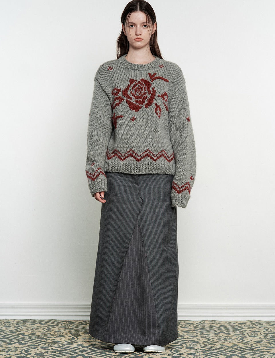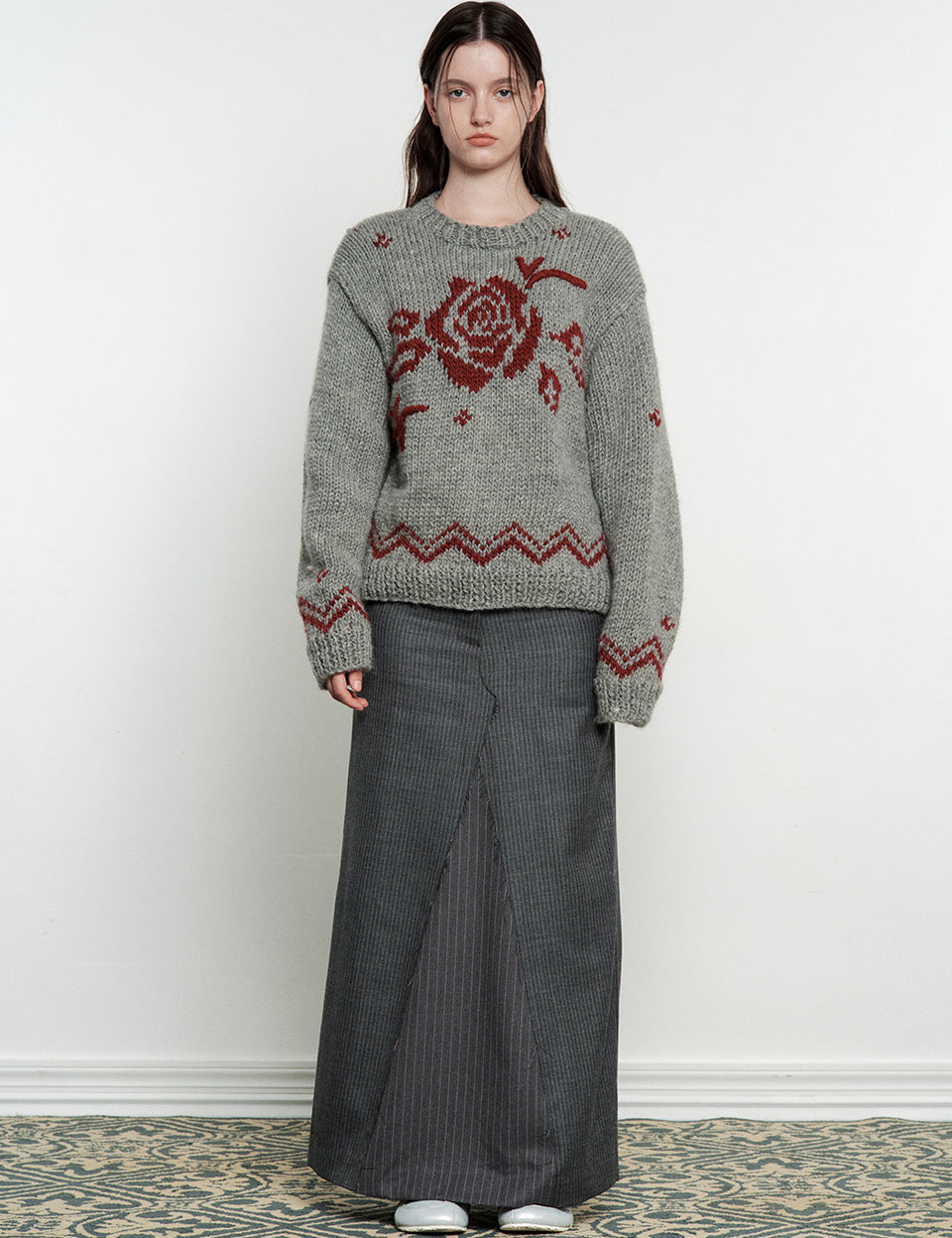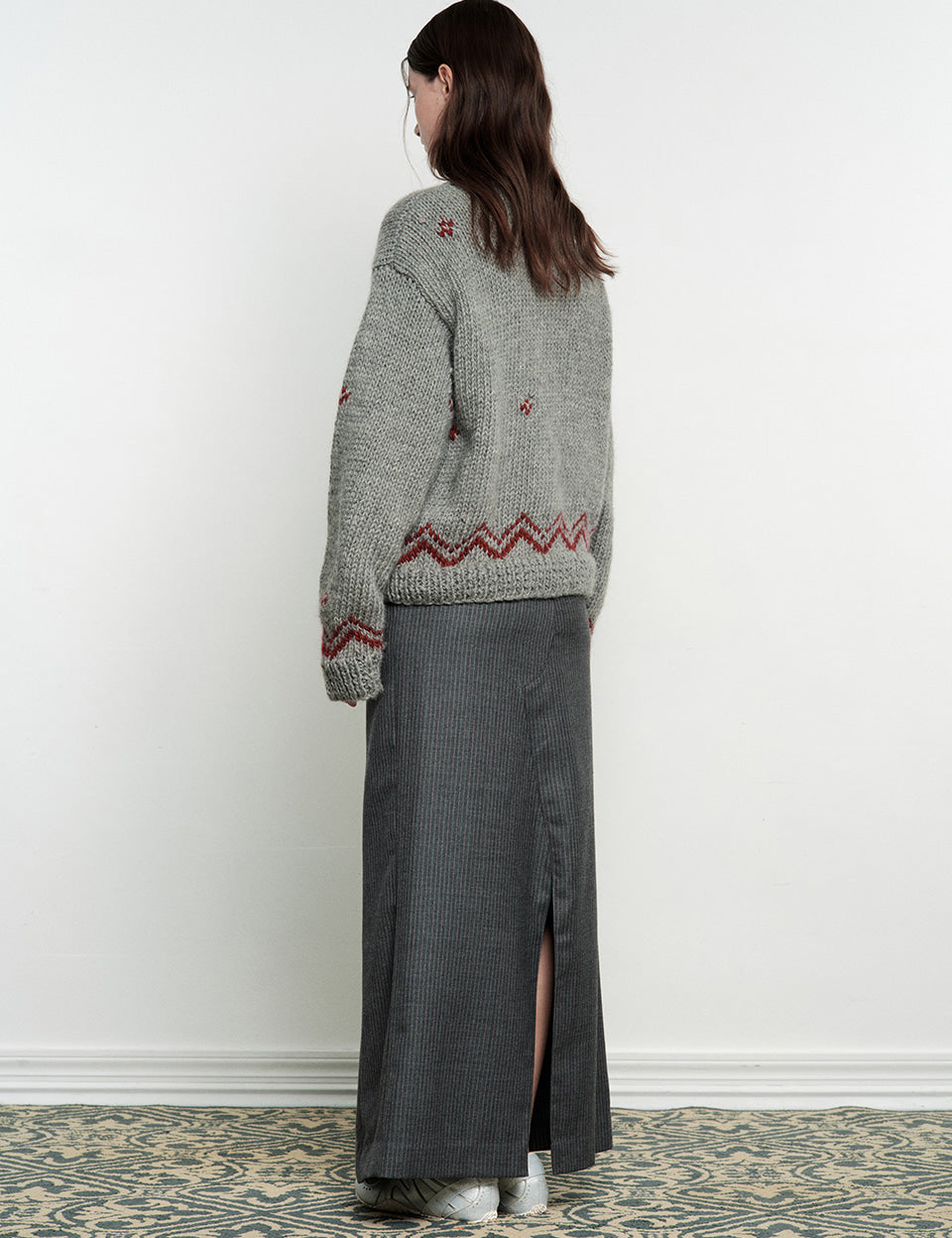 55 MOHAIR STRIPE CARDIGAN_burgundy/grey