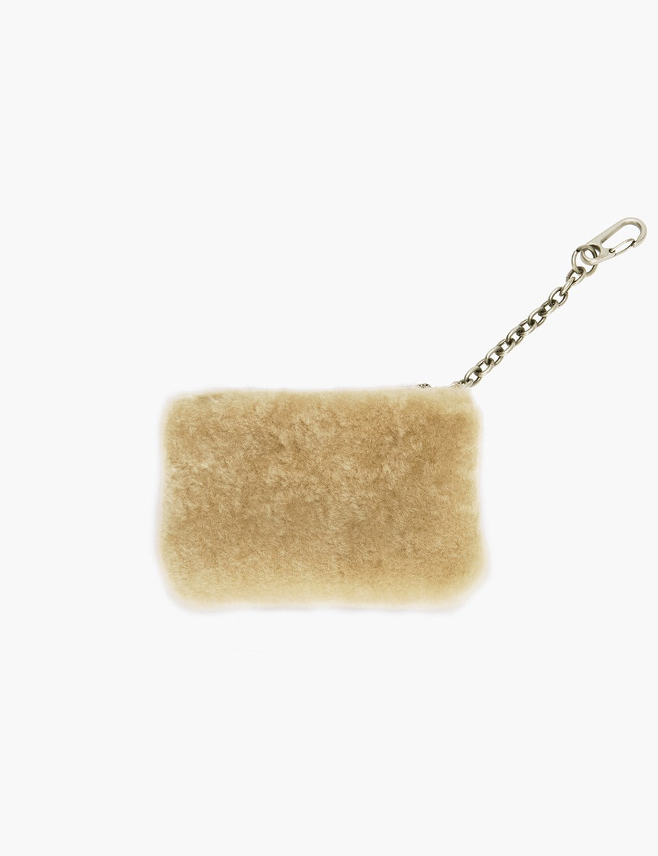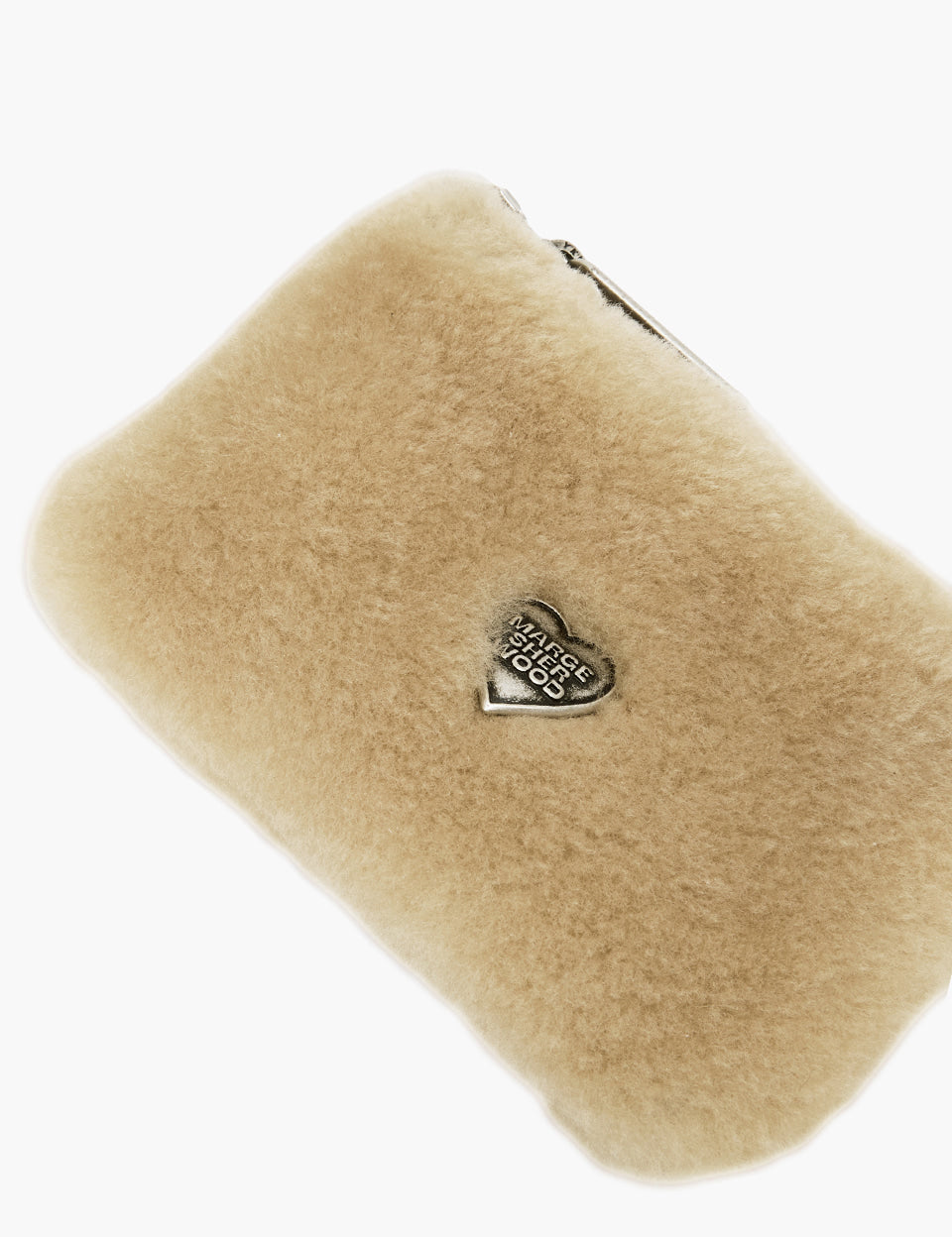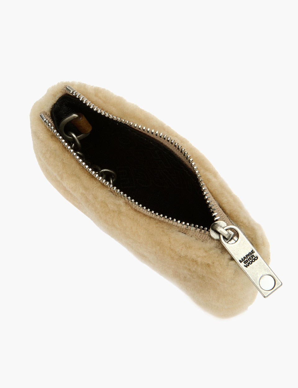SHEARLING DRAWSTRING POUCH_beige shearling+chestnut nubuck