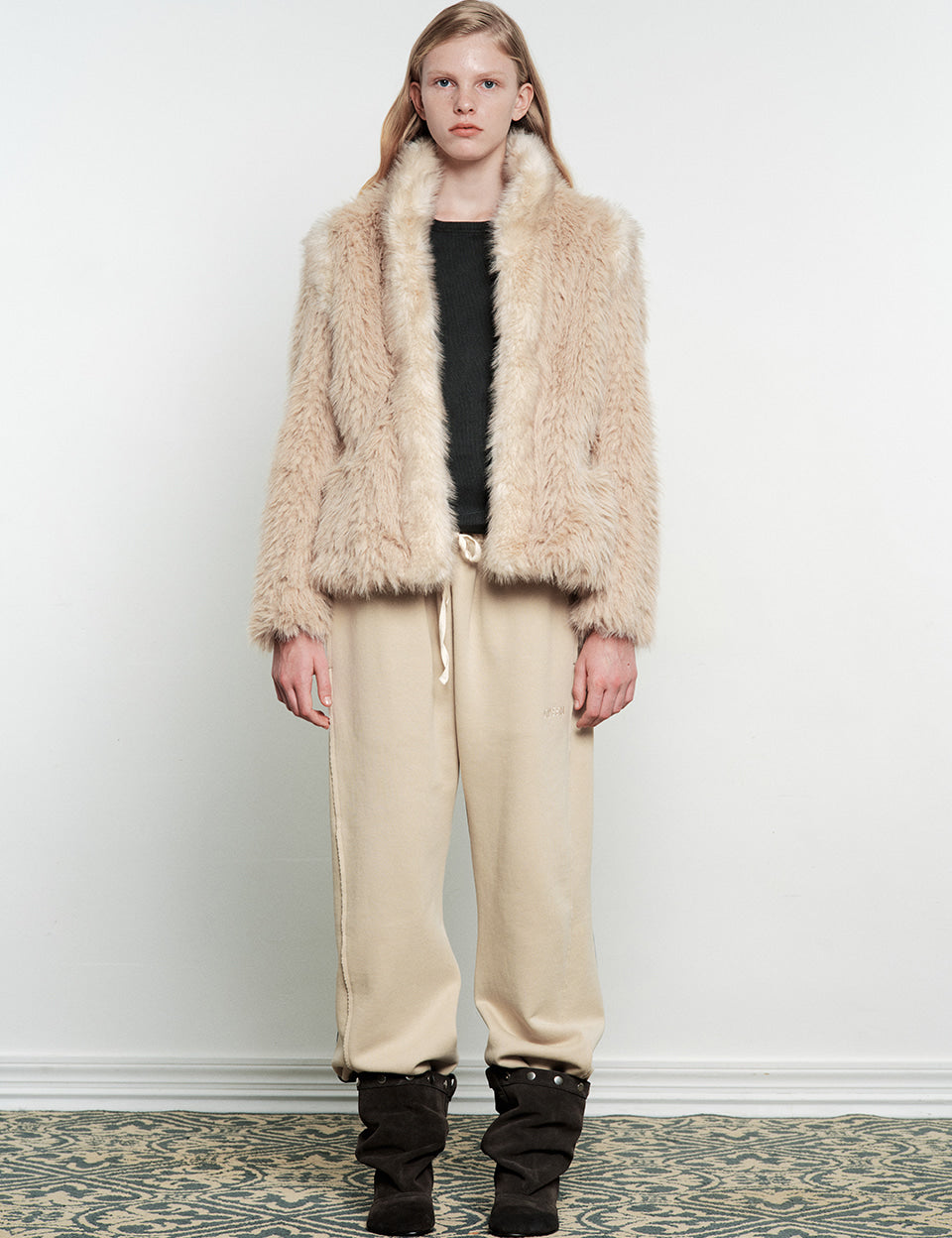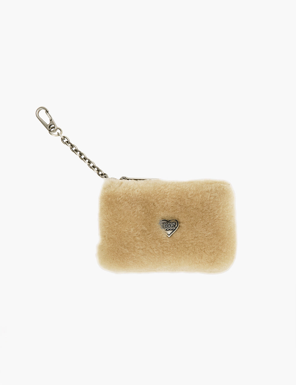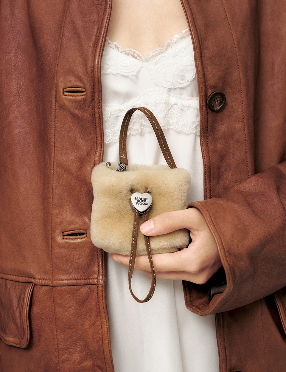SHEARLING DRAWSTRING POUCH_beige shearling+chestnut nubuck