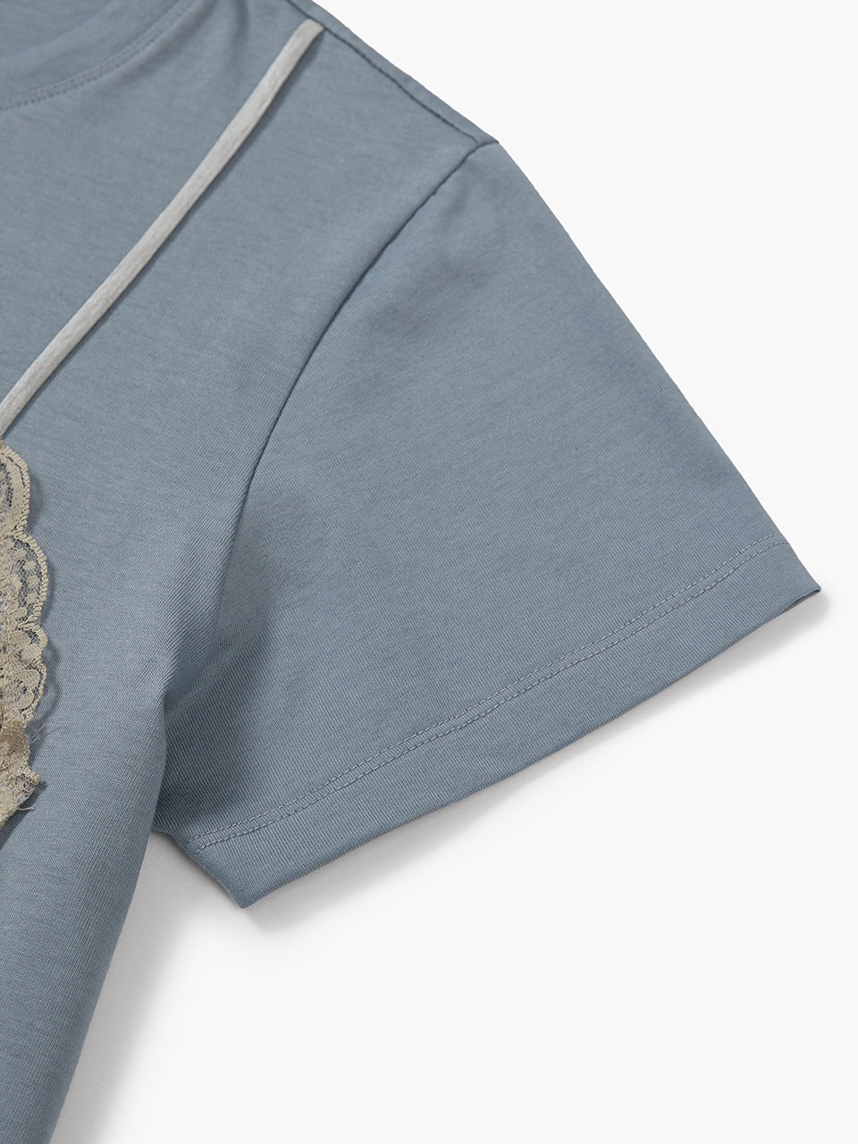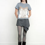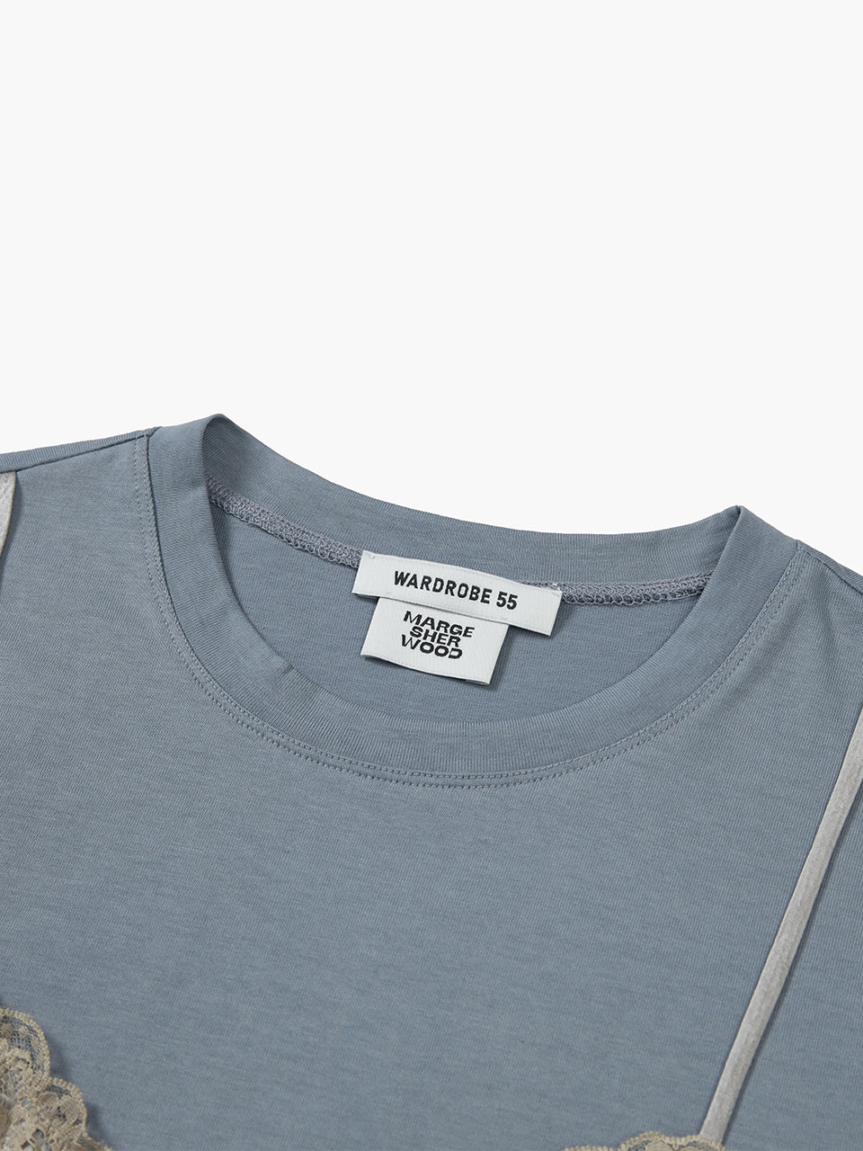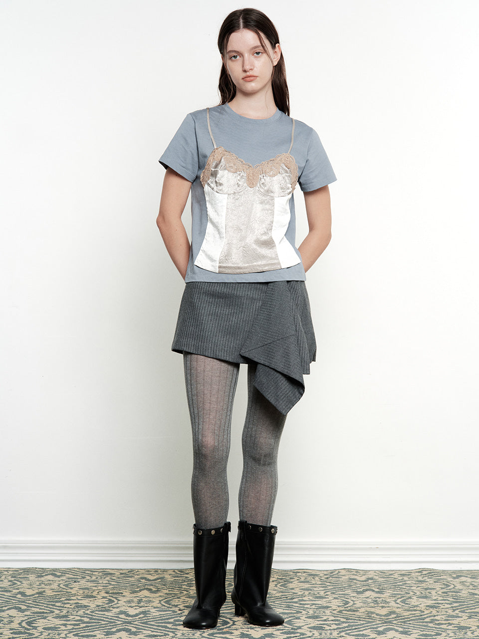 This regular-fit short-sleeve T-shirt features a camisole attached to the front panel for a layered look. The contrast of wrinkled satin and dotted velvet satin adds texture, while the silk-processed jersey fabric ensures a soft yet structured feel.