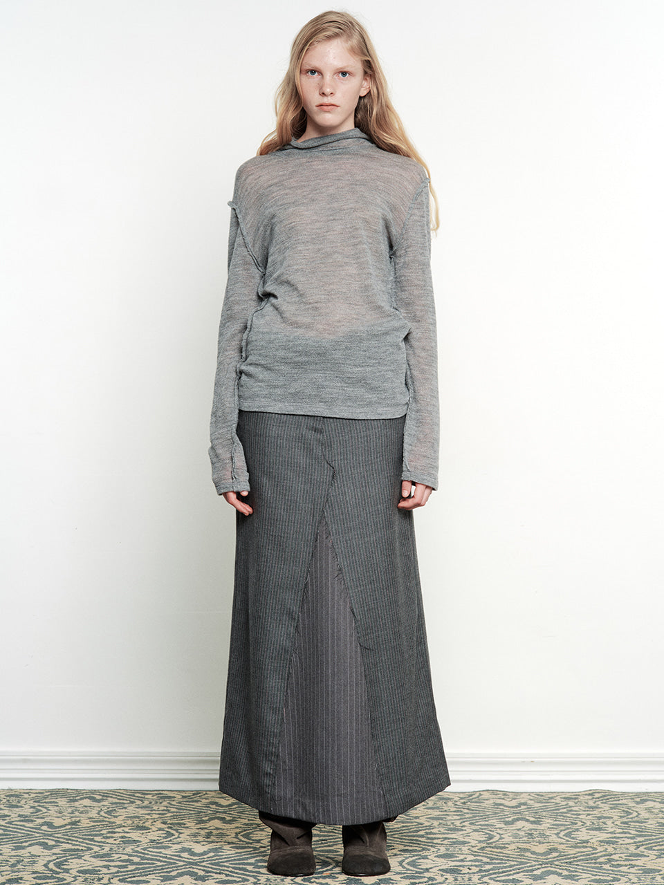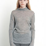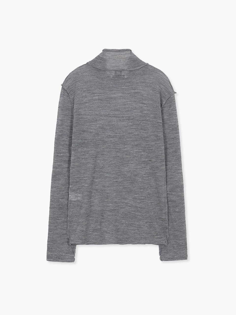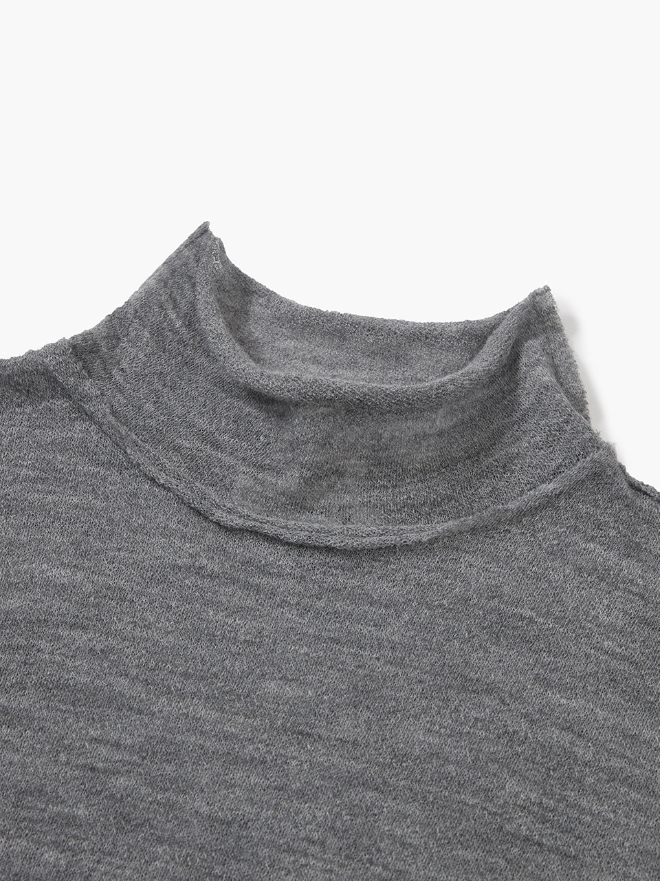 A turtleneck top crafted from 100% soft and cozy wool. Designed with raw-edge finishing and a slim silhouette, it can be worn on its own or layered effortlessly with various pieces.