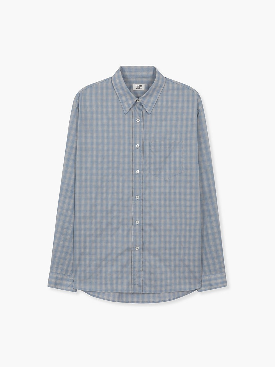 - フォーマルなチェック柄生地を使用した、ゆったりとしたオーバーサイズのカジュアルムードシャツ