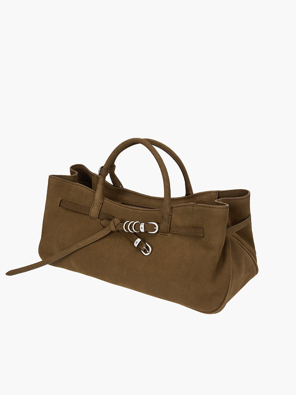 · East-west structured bag featuring a knotted belt strap