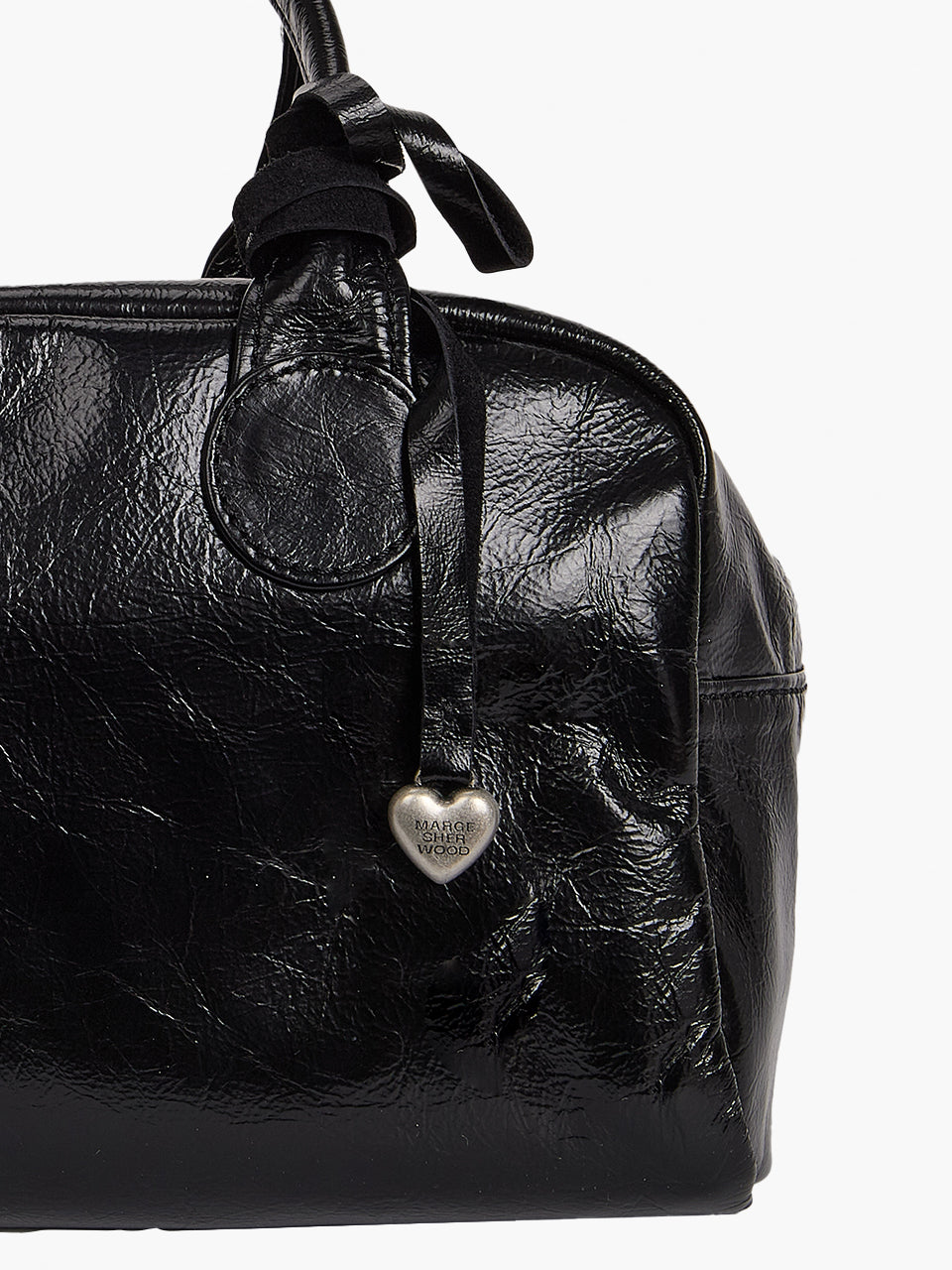 - Leather strap bag charm featured Margesherwood logo engraved heart shaped pendant