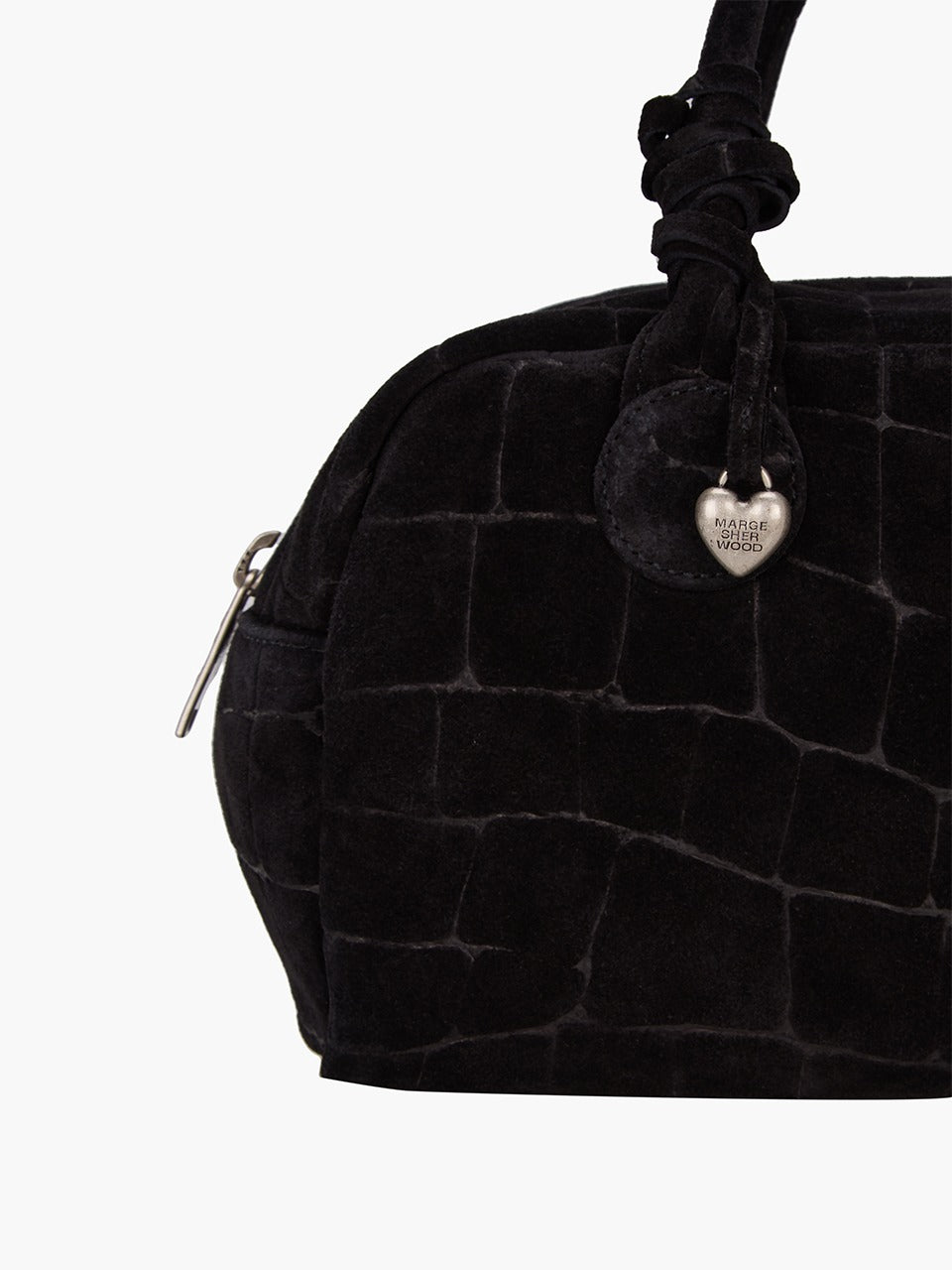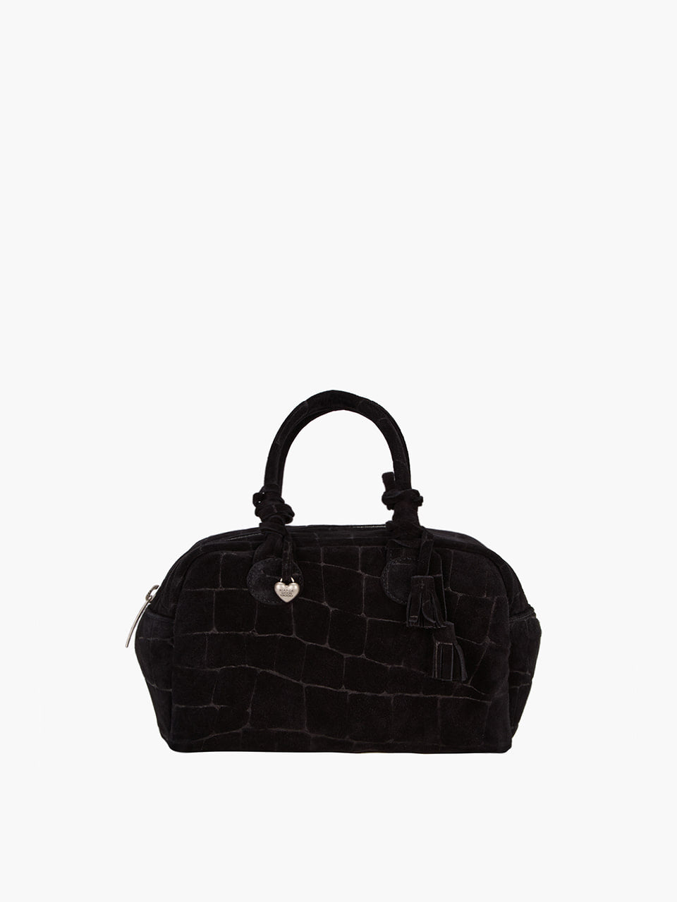 HEART CHARM_black croc-effect suede